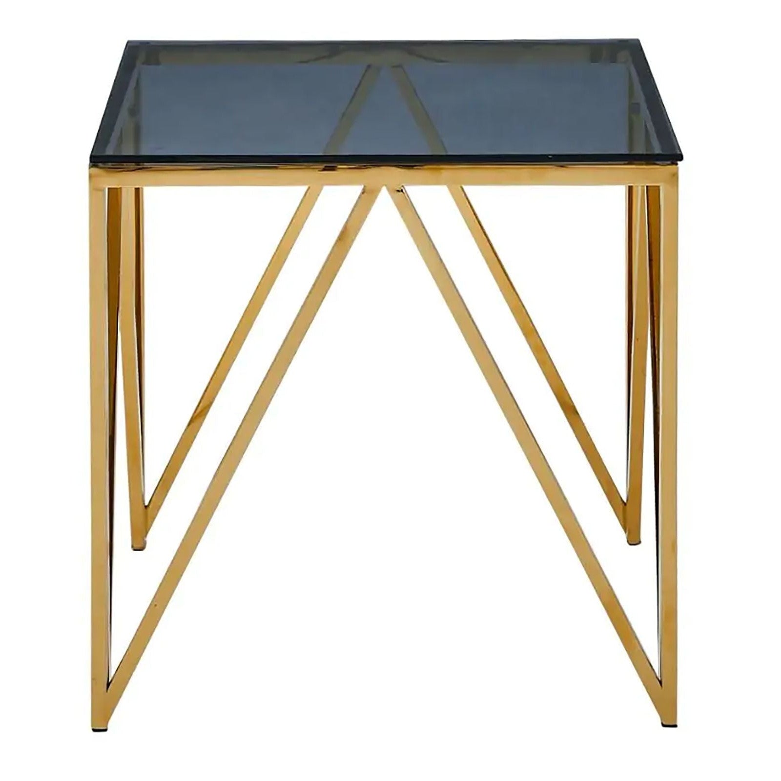 The Allure Lamp Table blends classic elegance with modern design, making it an essential addition to any living room. Crafted with a refined gold frame and topped with sleek blue-grey smoked glass, this table enhances any space with a touch of sophistication. Its compact size is perfect for tight corners or beside your favorite armchair, offering style without compromising on functionality.