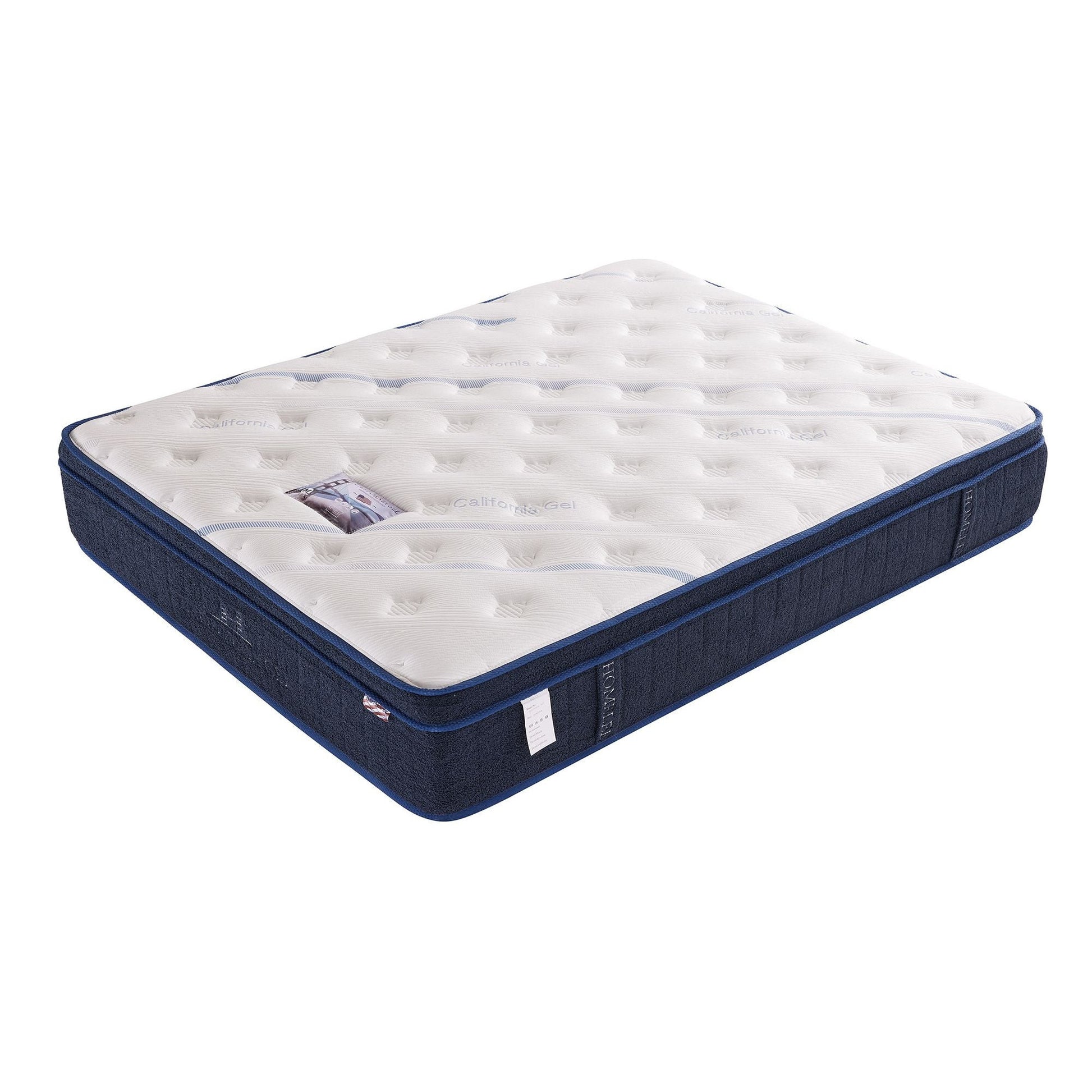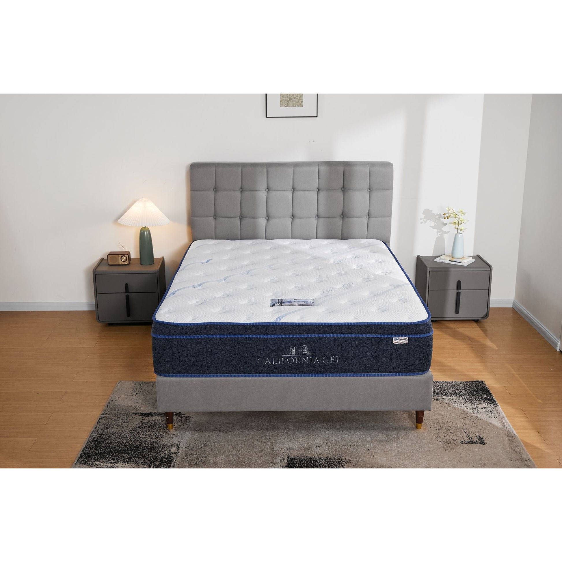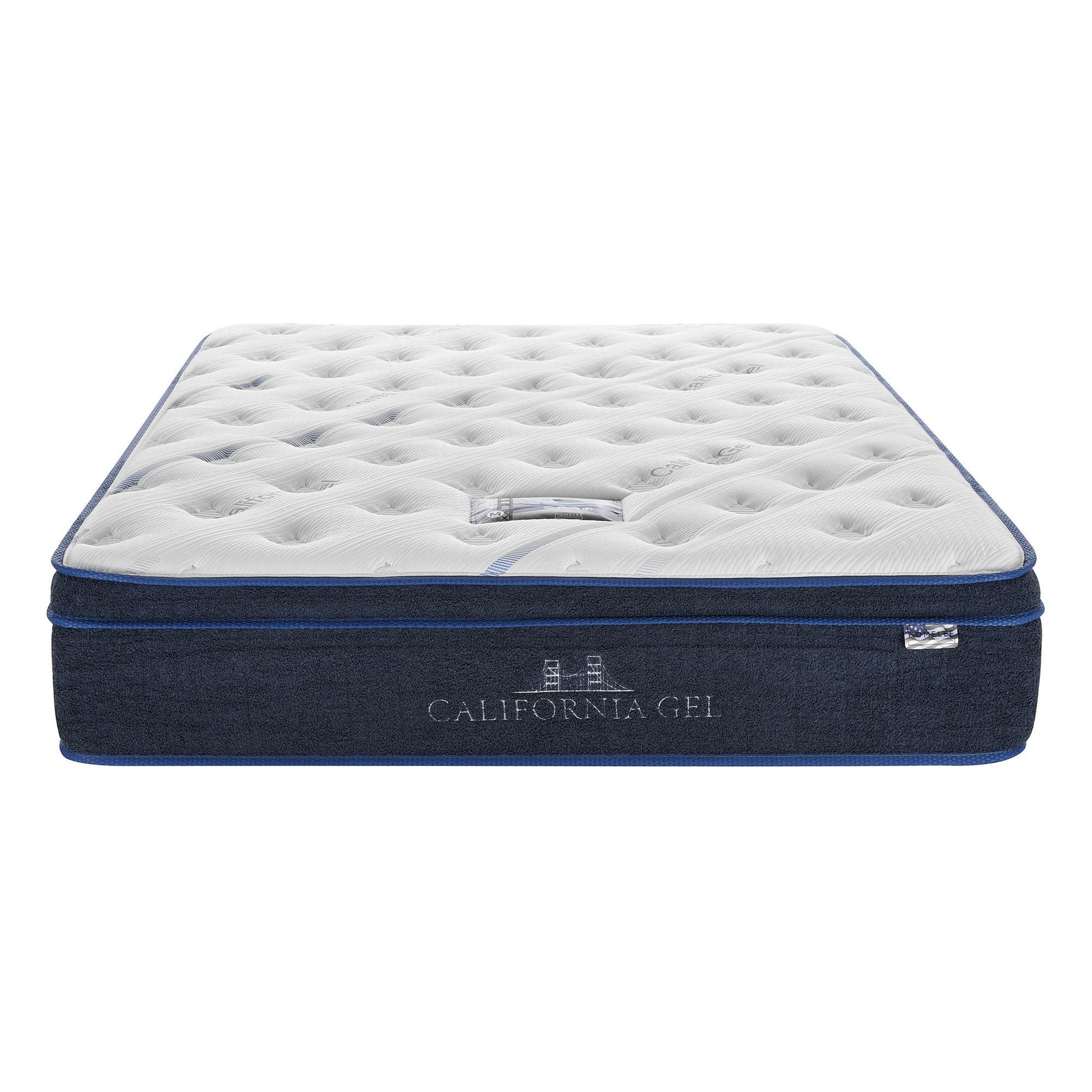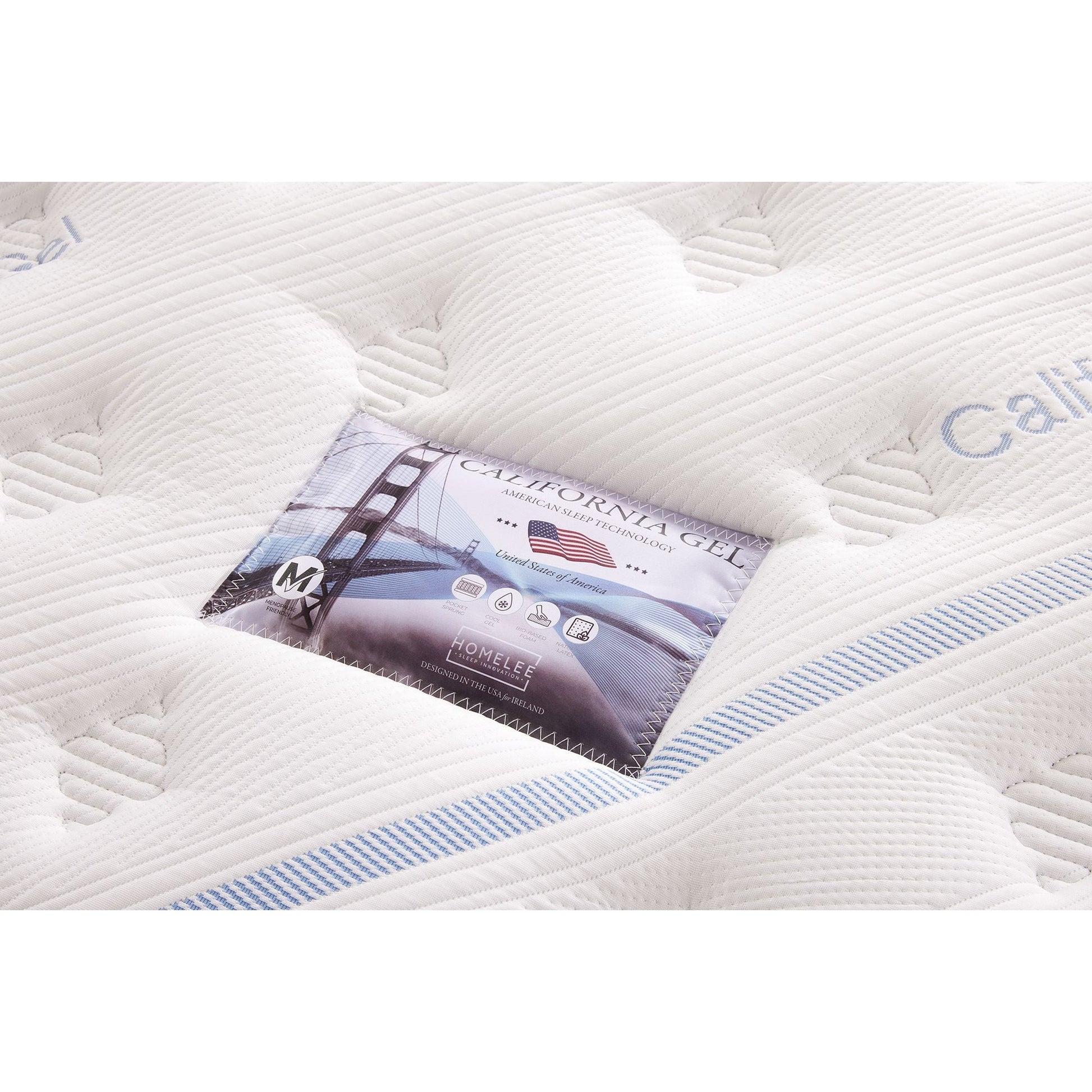 The California Gel mattress is a stunning addition to your sleeping environment. Integrated with modern technology, the California mattress' hand woven seams combined with its exclusive touch-knitted fabric allow the sensation of an elegant and comfortable texture. Its deep navy colour adds visual aesthetic to rooms looking for a modern elegant touch. This mattress is further enhanced by its cool gel plush fabric researched and developed by Homelee. Unlike standard memory foam, this technology works multiple times faster by absorbing excess heat when you're too hot or releasing stored heat when you're too cold. All of these combined features help to keep you comfortable for a long night's sleep every night. On top of everything, cool gel is also chemical free, meaning it's much safer and better for the environment too. This mattress has been exclusively designed in the United States for the Irish market.