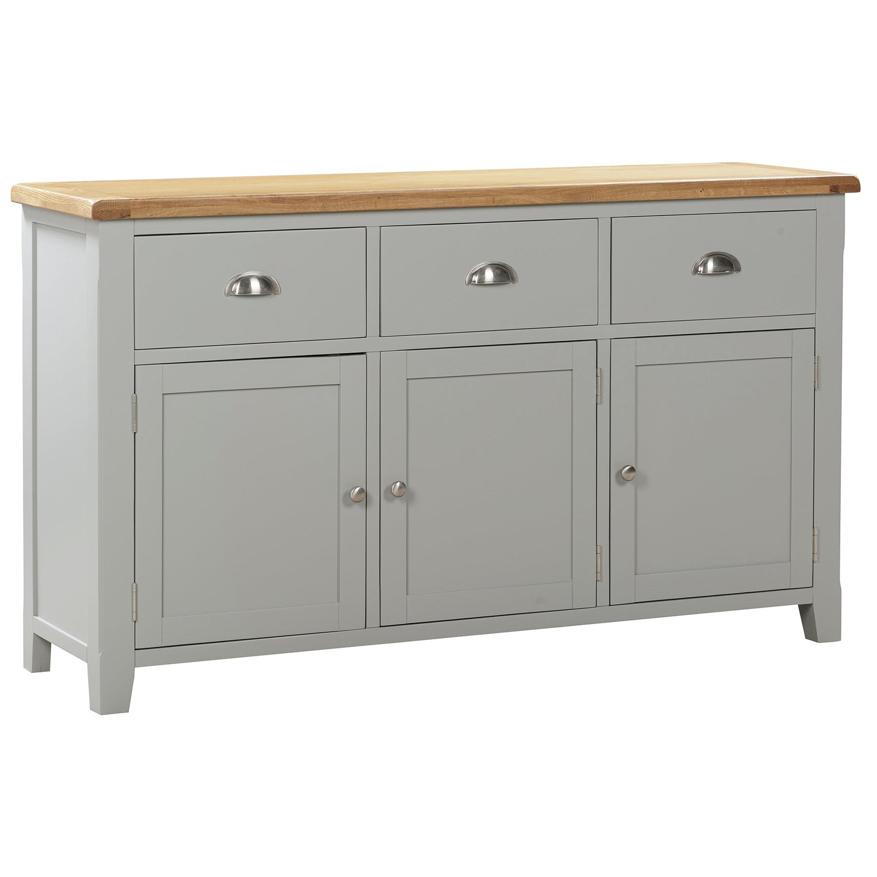 Every living or dining room needs a sideboard and this one combines on-trend style - that mushroom grey painted and oak finish! - with everyday practicality. Large in scale, with its understated contemporary style with an on-trend oak and mushroom grey painted finish, this oak sideboard showcases impressive craftsmanship with its generous proportions. Exclusively available at Caffrey's Furniture!