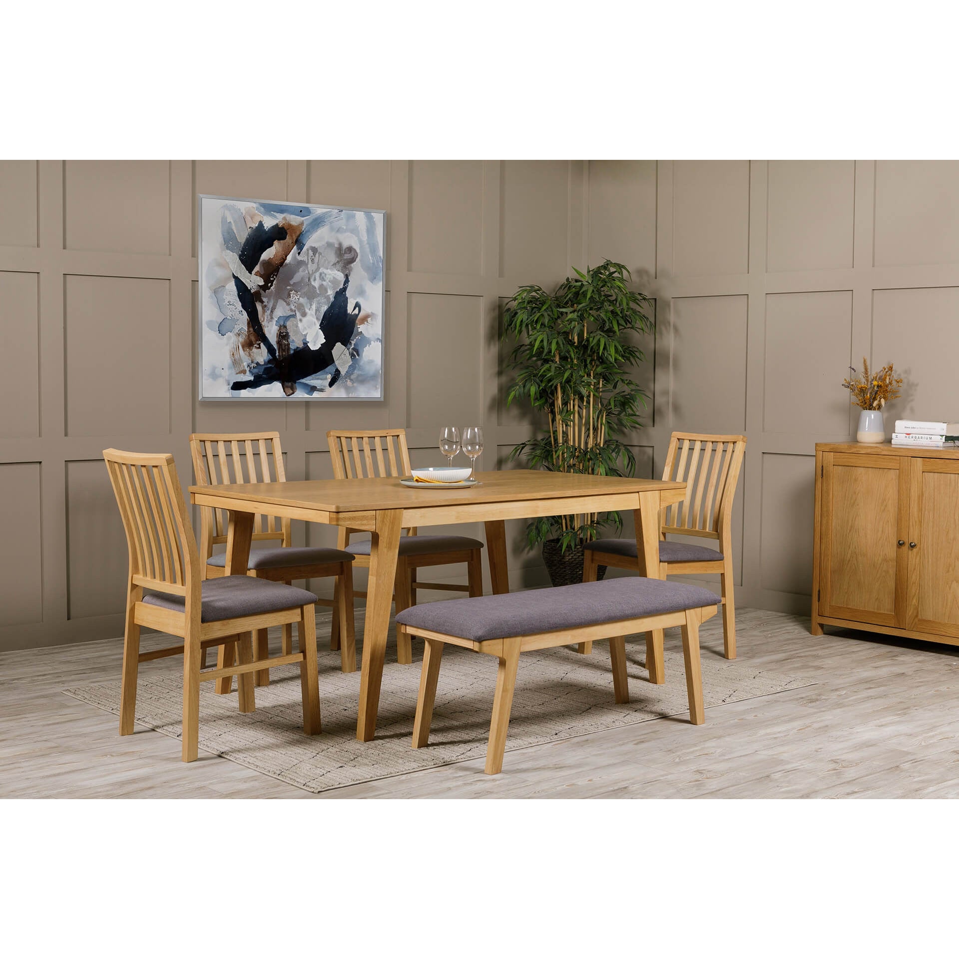A versatile yet practical dining range, the fabulous Cooper set is crafted from high quality oak veneer and tonally matched solid hevea wood. It's finished with a lacquered coating to add that extra durability. Ideal for family dining.