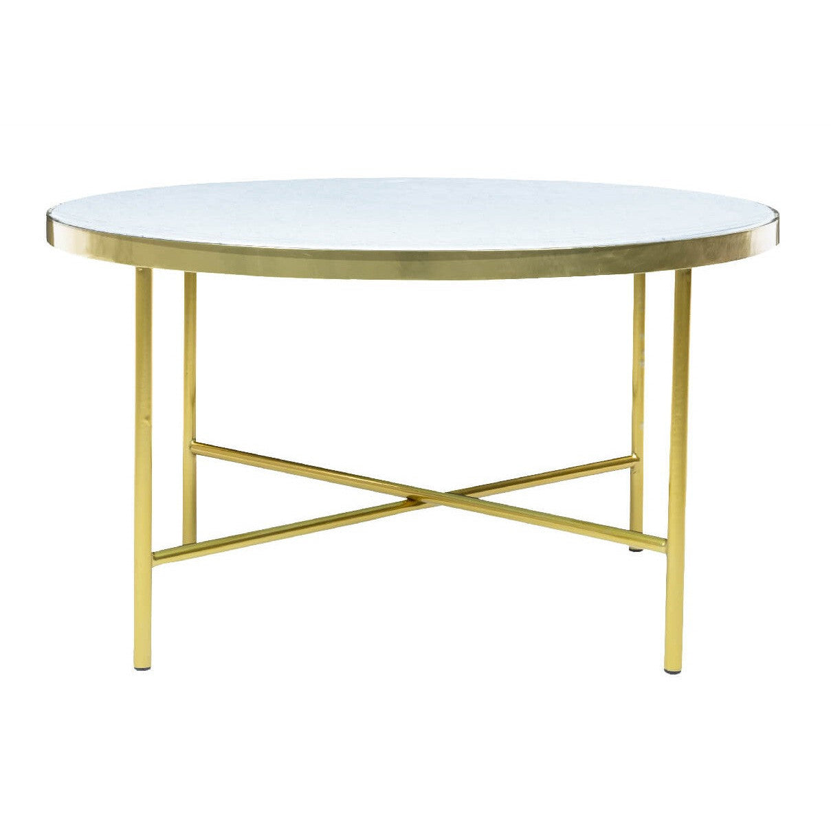 The Cora round coffee table is a luxurious centrepiece addition to your living space. Sophistication is added to the room with its terrazzo coloured glass hill tabletop. The coffee table is completed with a glamorous gold finish which gives it a sturdy support and enhances its elegant aesthetic.