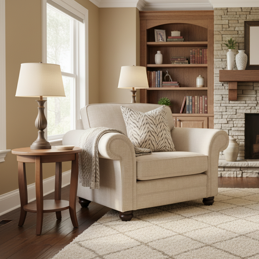 Decorative accent cushions with a delicate herringbone pattern introduce texture and visual interest, perfectly complementing the calm, earthy color palette. Designed to suit both classic and transitional interiors, this sofa suite offers a harmonious balance of comfort, durability, and understated elegance - an excellent centerpiece for a furniture showroom display.