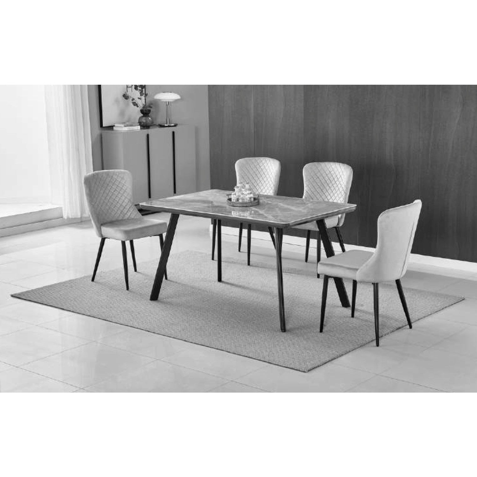 Create a modern dining space with the Dario dining table. With space to seat six, you’ll be able to enjoy larger family meals as well as host for friends. This table is a lighter take on the industrial style with its contemporary cool design. the Dario dining table comes in a light marble effect top that contrasts beautifully with the black powder-coated or silver leg frame for a finish that’s perfect for the modern home. The Dario features a black metal or silver frame legs. Great for kitchen spaces, the Dario will fit perfectly into a light and bright space. The Dario also looks great with any of our modern dining chairs, a combination that creates a trendy and chic eating space that’s sure to be the envy of all your guests and creates a dining space that you’ll long to show off.