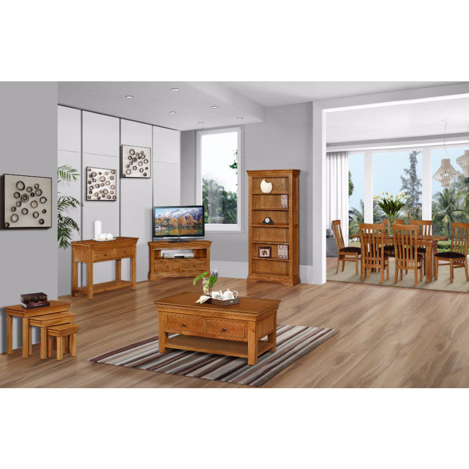 Your elegant living space awaits. Inspired by classic French furniture and beautifully finished in an oak colour, our Delta collection offers heirloom-quality pieces for living, dining & the bedroom large and small. Start with the curvaceous dining collection – and then choose from an extensive selection of coffee tables, lamp tables, wardrobes, chests of drawers, bedside tables and more, all of which feature the range’s signature panelling and smooth woodgrain-enhancing lacquered finish. Made by furniture experts using traditional cabinetry techniques like dovetail drawer joints and tongue and groove interiors, the Delta range exhibits beautiful oak furniture details inside and out.