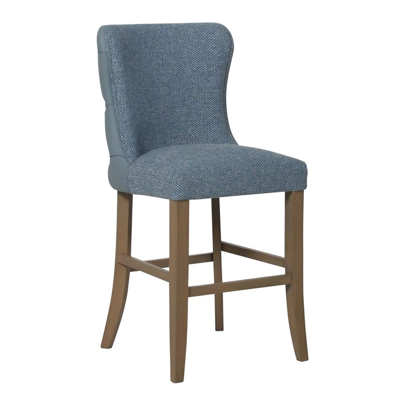 The Duke bar stool is a classic armchair with proud and well-balanced line. It is a luxurious and beautifully crafted bar stool with stunning details - a deep leather button back, soft linen fabric and weathered oak legs! The Duke is a bar stool in a league of its own with its lightly distressed chair legs for a rustic touch and a slight curved wingback for elegance. This bar stool fits perfectly with styles from traditional and transitional to rustic and modern farmhouse. This really is an on-trend bar stool.