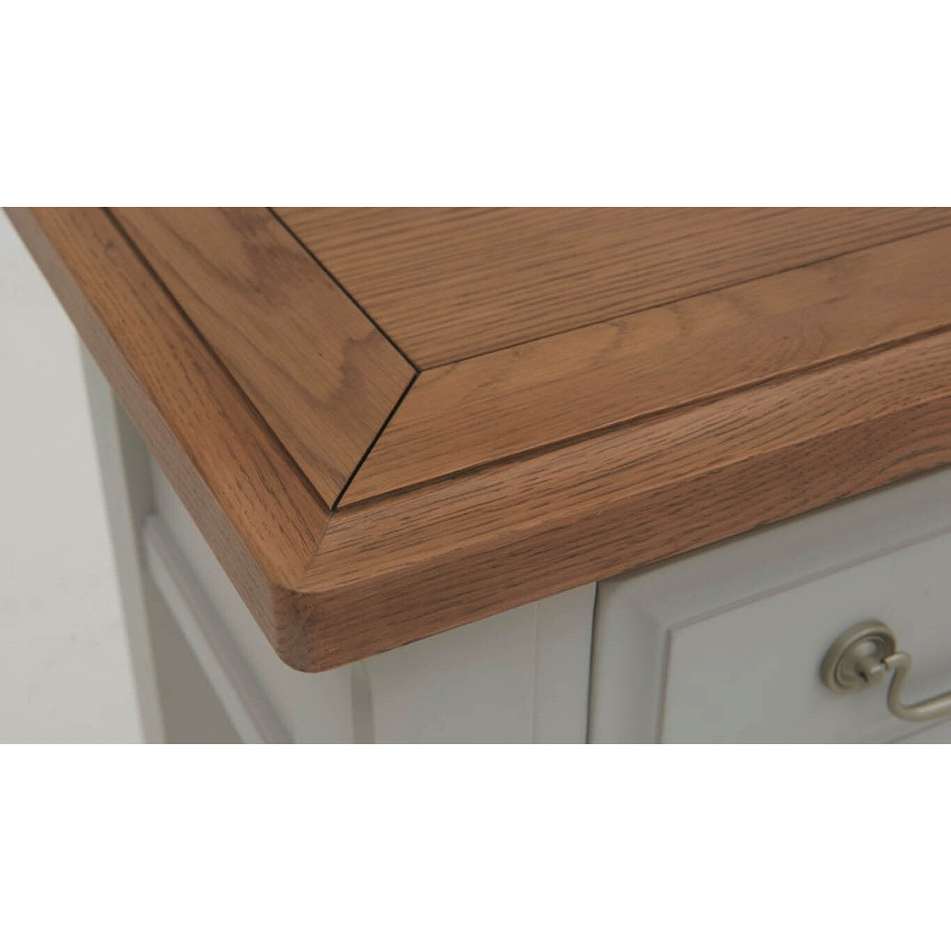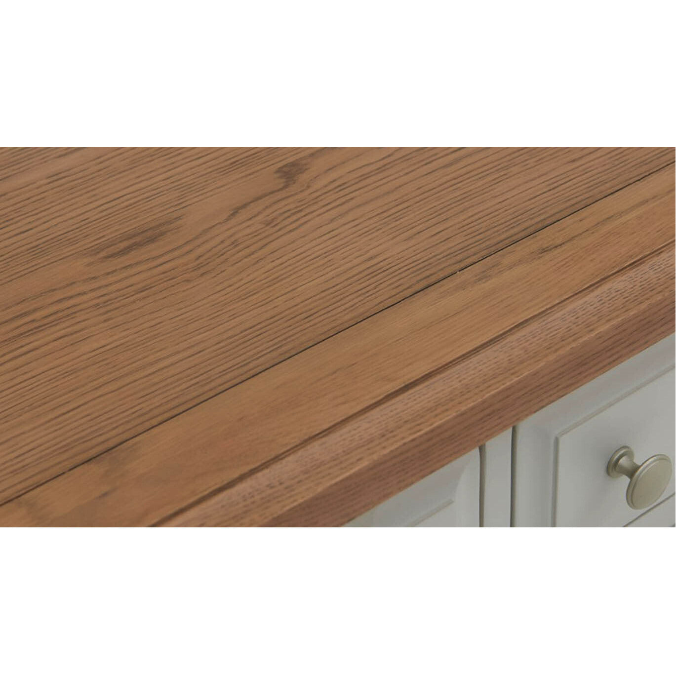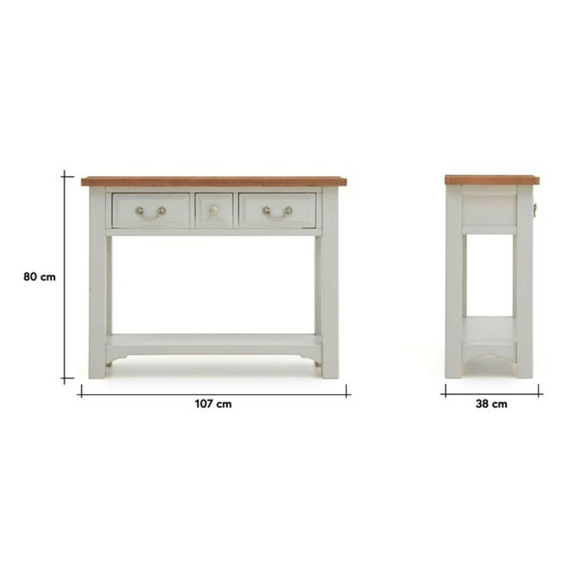 The original Eden collection offers a welcome combination of style and craftsmanship, the Eden console table feels at home in all kinds of spaces. Stylish in appearance with straight lines and squared edges, this Console Table is sturdily constructed from solid timbers and American oak veneer and feels so solid. It’s so on trend too. The table top has a light grey painted finish for a lovely contrast with the smooth oak top. This piece is as functional as it is stylish. It also features a bottom shelf and three drawers for extra storage space. The Eden console table is part of the fabulous Eden living, dining and bedroom collection, only at Caffrey's Furniture!