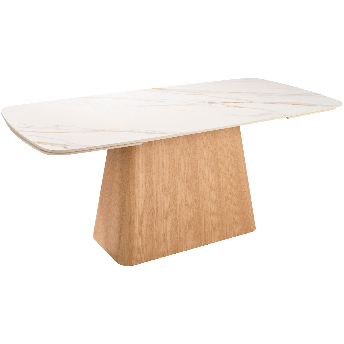 The Evie collection is a modern range with soft curved edges, suited to contemporary interiors. The sintered stone table and sideboard tops are heat resistant, making them more durable and resilient. This pristine piece boasts qualities such as being water proof, scratch resistant and stain proof. The Evie's oak base enhances style and functionality.
