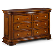 Beautiful French style bedroom furniture with a natural wood finish and a slight lacquered effect to the detailed hand carvings, along with a beautifully detailed drawer handle. This is a very sturdy and solid piece.