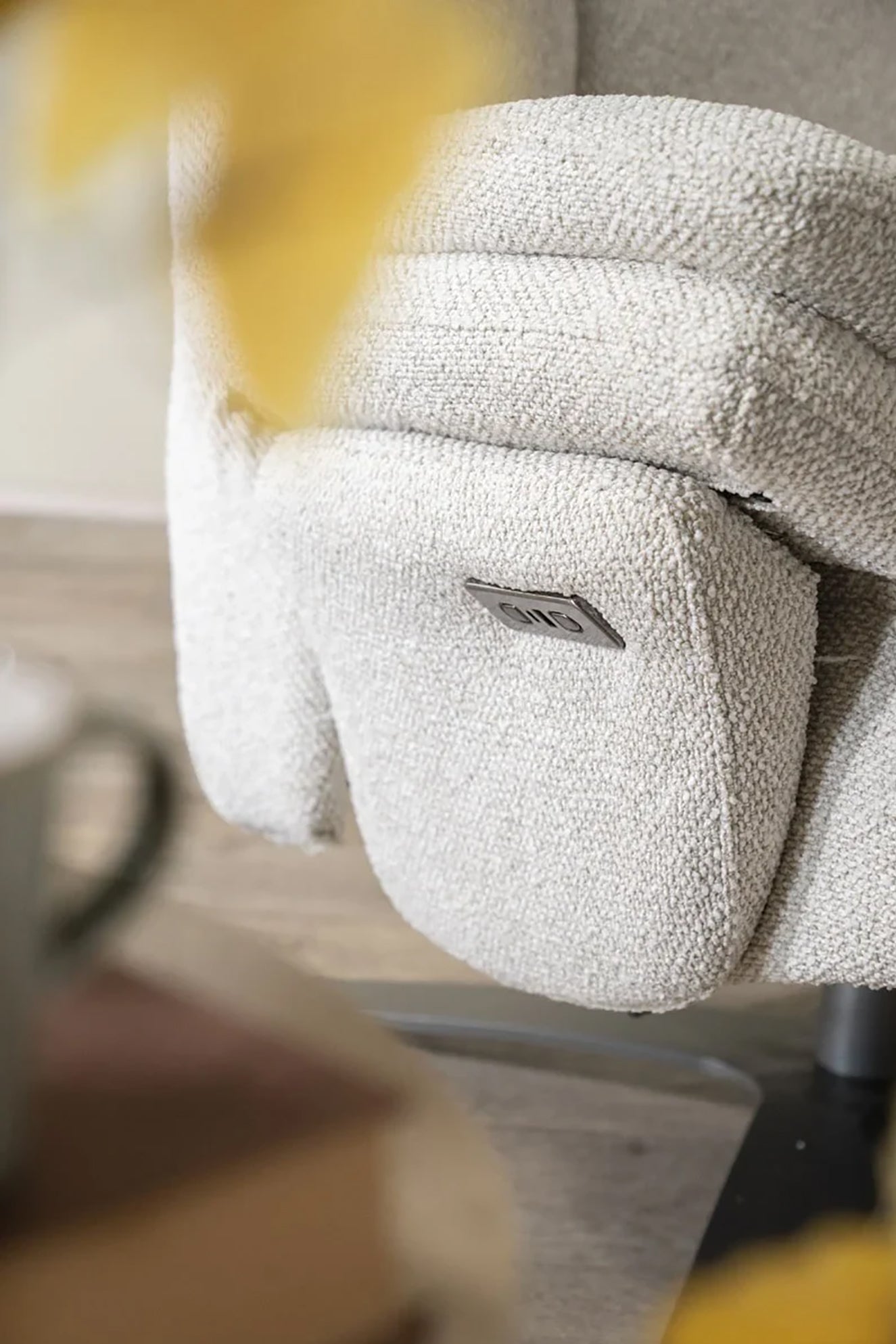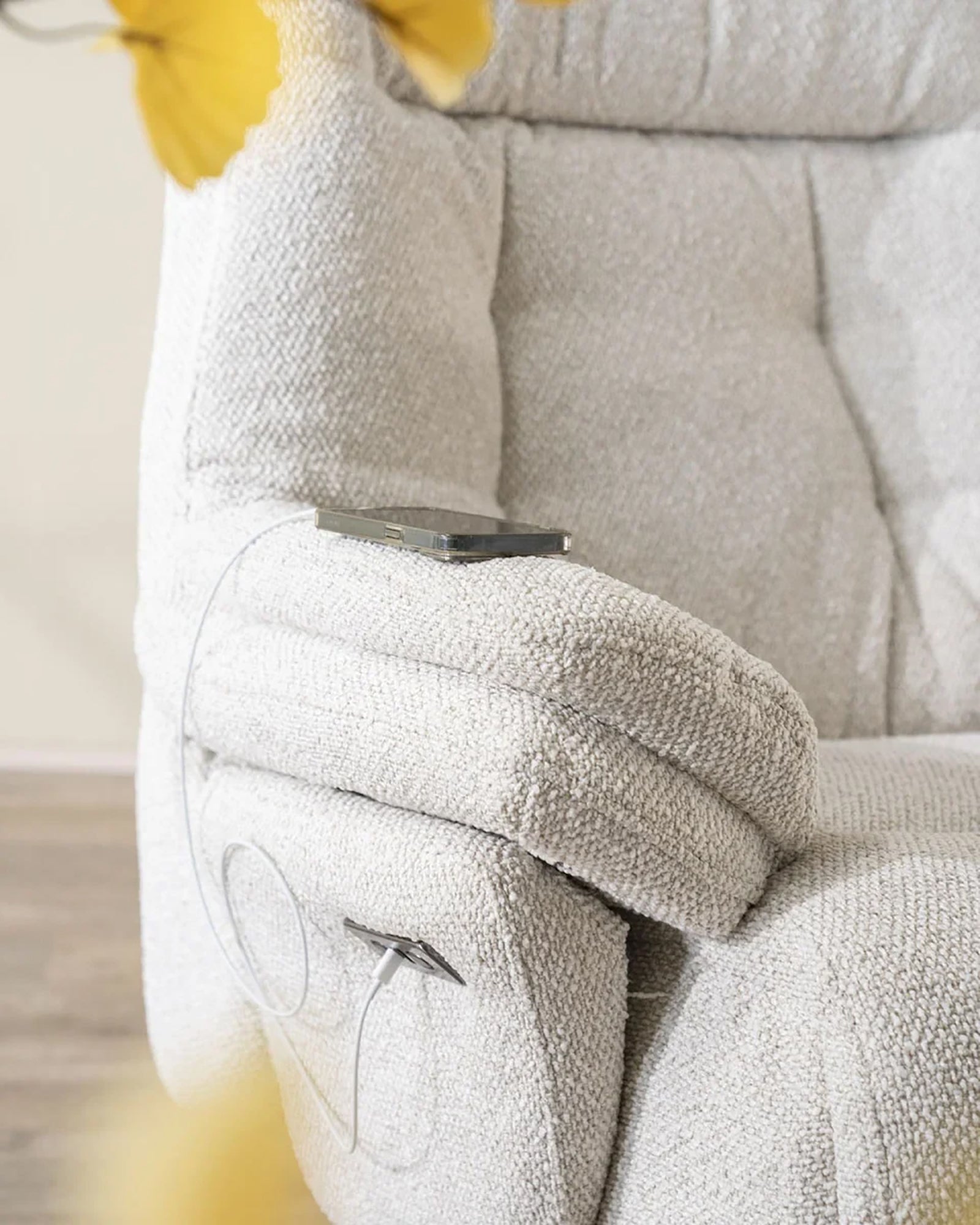 Experience ultimate comfort and relaxation with the Wave Electric Recliner Armchair, available in elegant three fabric colours. This luxurious chair is designed for effortless relaxation, featuring an electric reclining mechanism that allows you to adjust your position at the touch of a button. The included footstool enhances the reclining experience, providing full support for your legs. The Wave Armchair smoothly adjusts your seating position for optimal comfort and includes a matching footstool for complete relaxation. You can conveniently charge your devices while you unwind, ensuring your phone or tablet stays powered up. The fabric is easy to clean and maintain, perfect for busy households. This Wave Electric Recliner Armchair combines modern functionality with timeless style, making it a perfect addition to any living room or home office. Whether you're looking to unwind after a long day or enjoy a cosy evening, this chair offers the ultimate in comfort and convenience.
