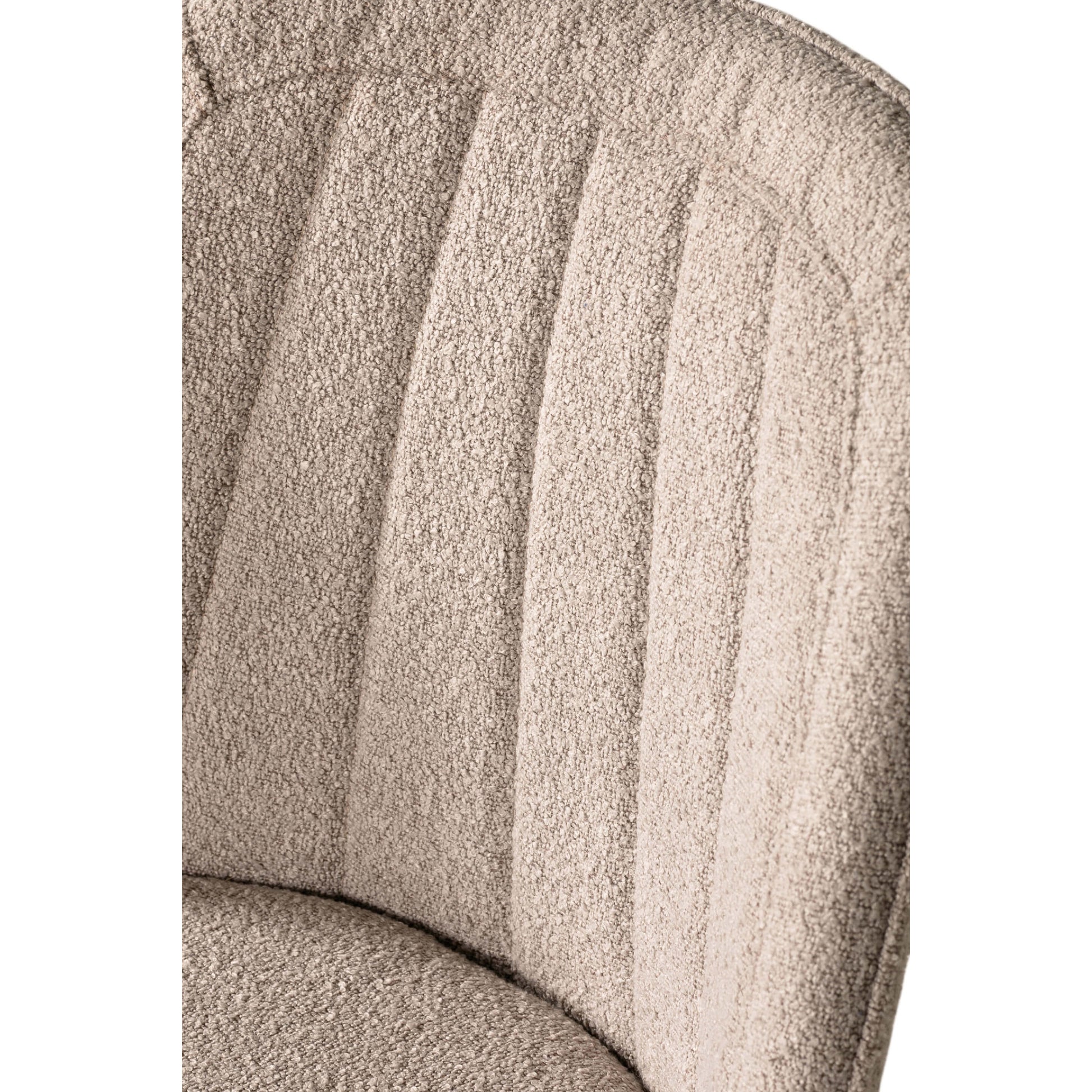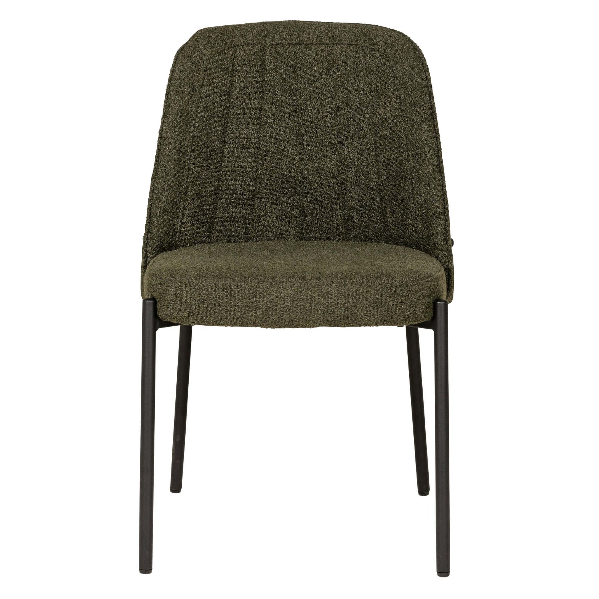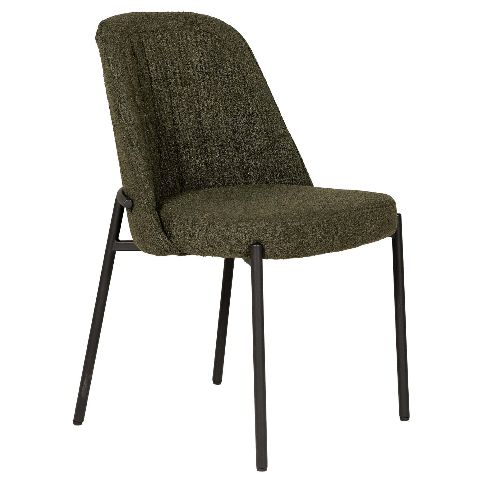 The Field dining chair is upholstered in a modern boucle fabric, complementing a range of kitchen decors. It adds texture and sophistication to the space, with the addition of sturdiness and a contemporary style from its black metal legs.
