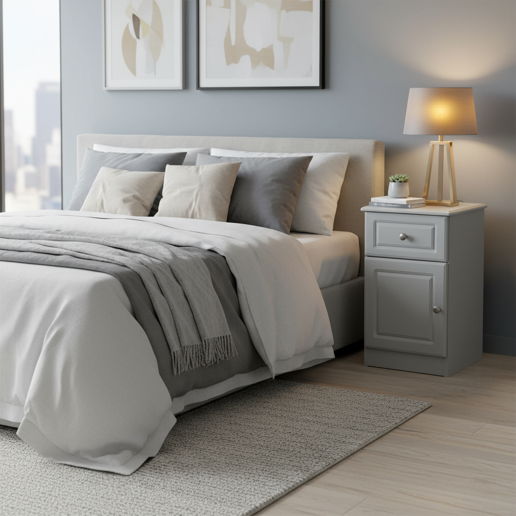 Bring an elegant yet modern touch to your bedroom with the Grey Ash door locker. Featuring high-end details like satin nickel handles and soft close panelled drawers and doors, this is a piece of furniture that prioritises functionality as much as it does style. The beautiful grey colour complements many decor schemes and with a choice of well-made chests of drawers, lockers, wardrobes, dressing tables, mirrors and stools, there's a storage solution for everyone to keep neat and tidy with. This quality furniture is delivered fully assembled.