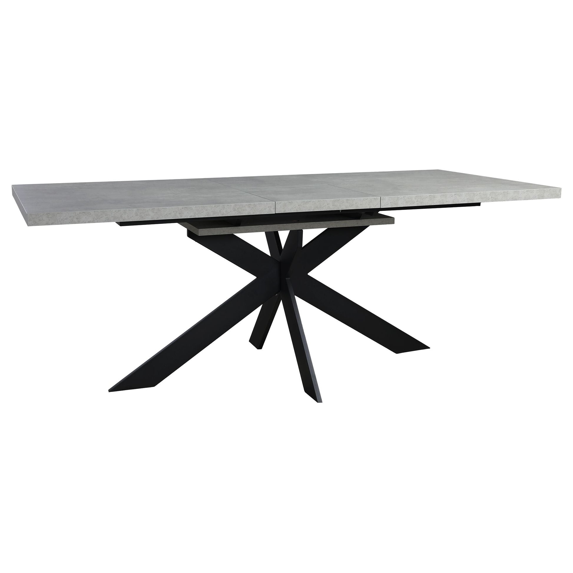 The extendable Greystones dining table is the original cross-legged iconic dining table with unmistakable industrial design. Perfectly combining an industrial style with a modern touch, adding personality and style to any environment has never been easier. The top and extension leaves of the Greystones concrete grey effect dining table are made of high-quality melamine, which is resistant and easy to clean. The table extends easily with a galvanized metal mechanism operated by one person. The crossed legs are black powder-coated iron. Choose the Greystones dining table and transform your kitchen or dining room into an elegant and unique place, enhanced by a piece of original and iconic design.