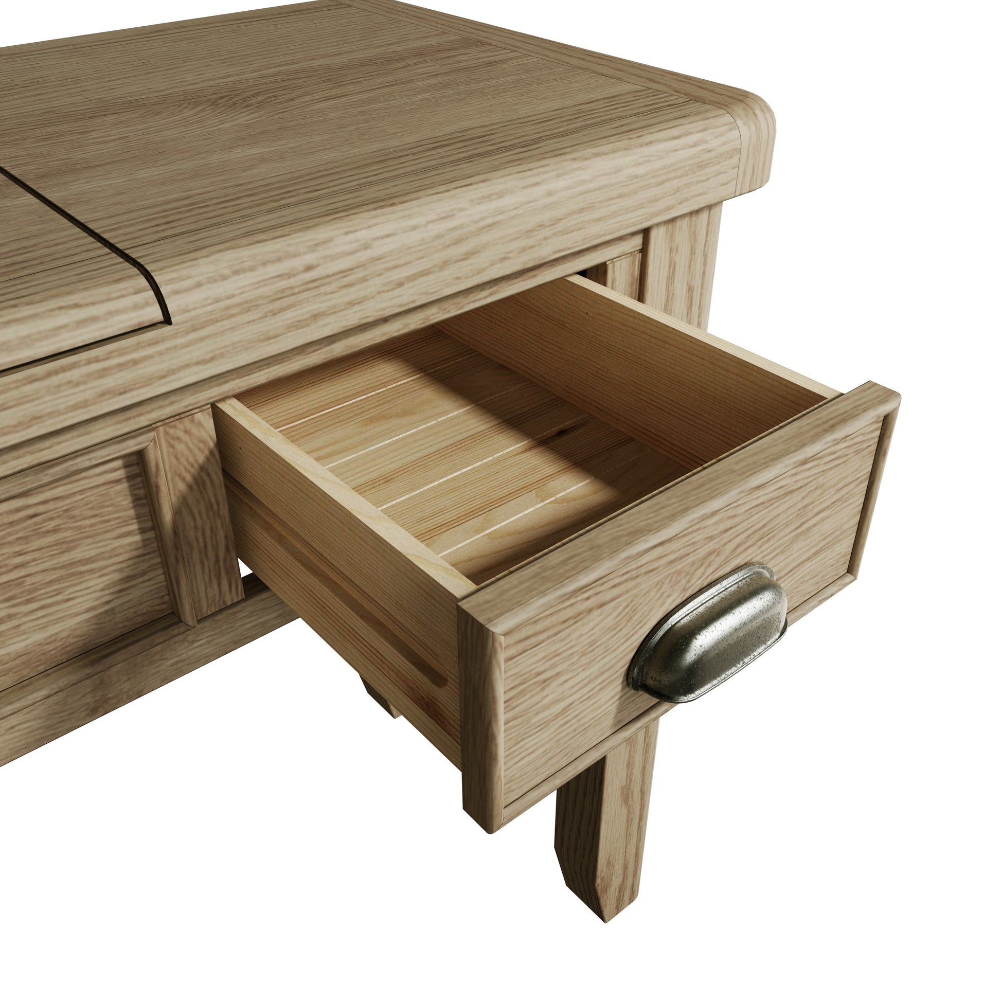 The Hodson Oak Dressing Table and Stool features a timeless, classic design with clean lines and a solid, well-proportioned silhouette. Crafted with a natural wood finish that highlights the grain, it brings warmth and character to any interior. The design balances practicality and style, combining smooth surfaces with subtle detailing and traditional-style handles for an understated, elegant look. Its sturdy construction and versatile appearance make it suitable for a wide range of rooms and décor styles, from traditional to contemporary living spaces.