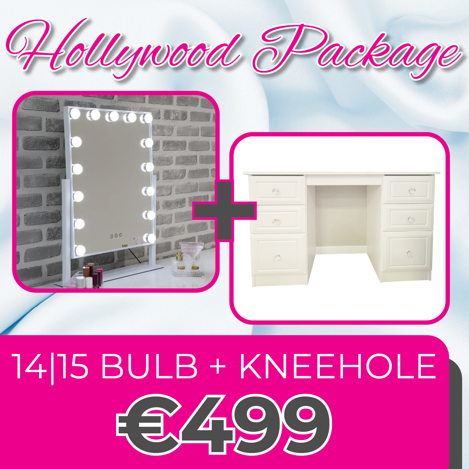 Hollywood 14/15 Bulb Mirror & Kneehole