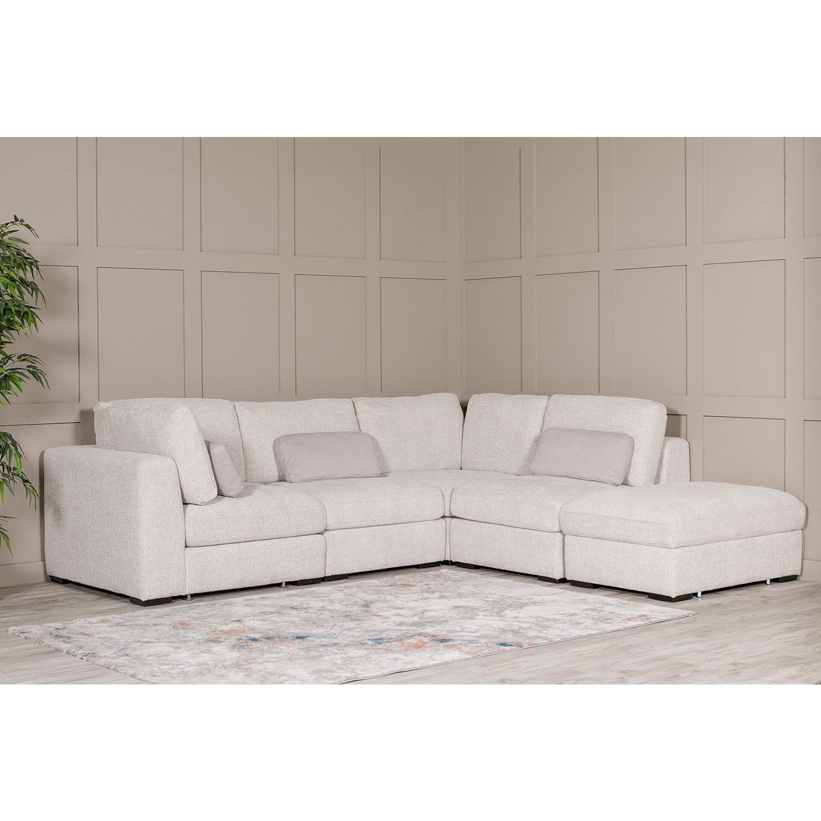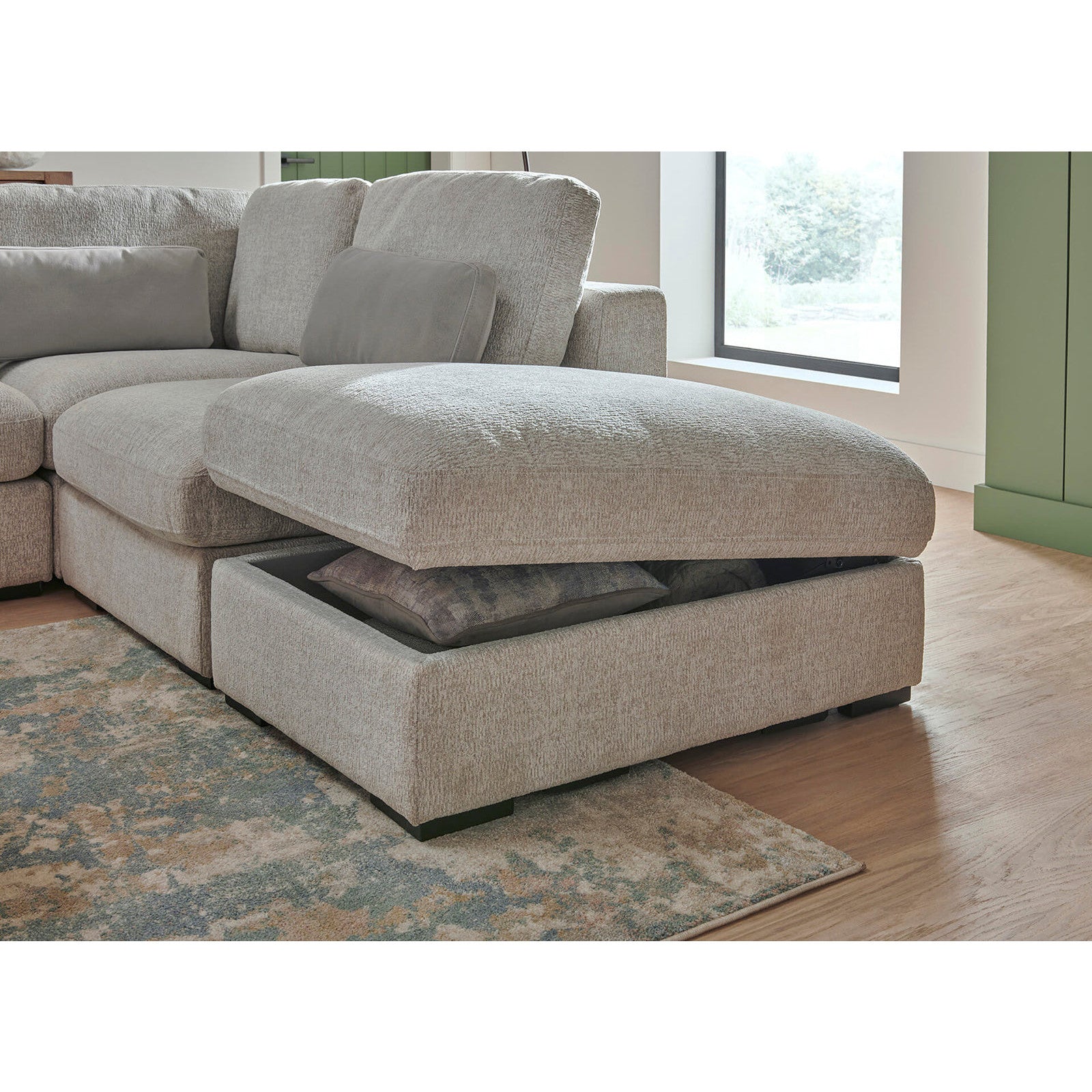 Introducing the Houston Storage Ottoman, a versatile and luxurious addition to your living space. With its modern design and loose back and seat cushions, this sectional offers both style and comfort. The modular system allows for unlimited options to fit your space perfectly. Upholstered in luxurious textured chenille fabric, it adds sophistication to any room. The pocket sprung seat ensures optimal support, while the included scatter cushions add a touch of elegance. Finished with solid wood legs, the Houston Sectional combines style and functionality effortlessly.