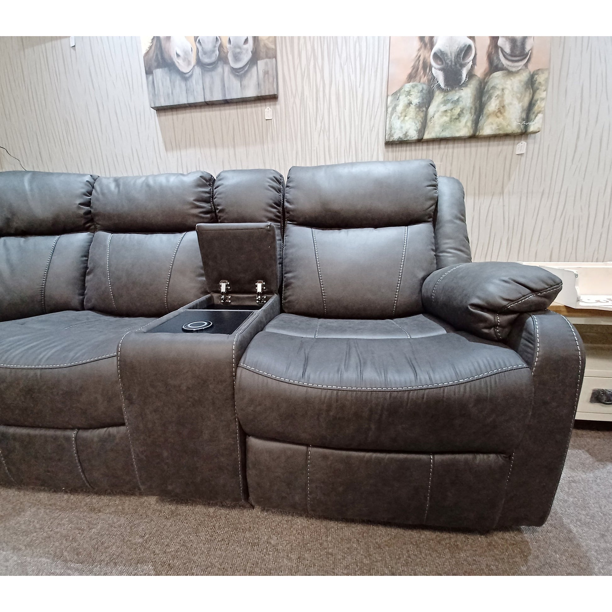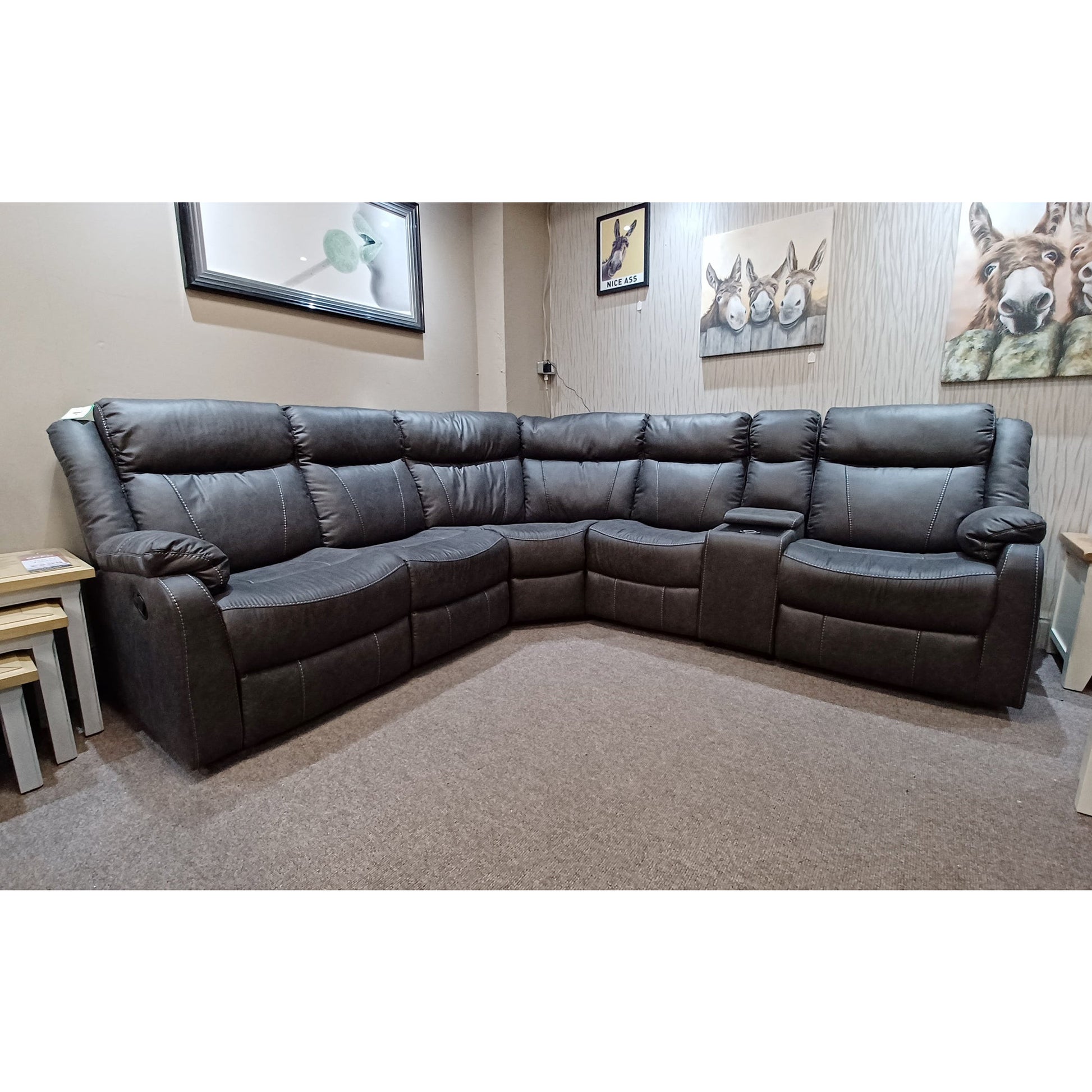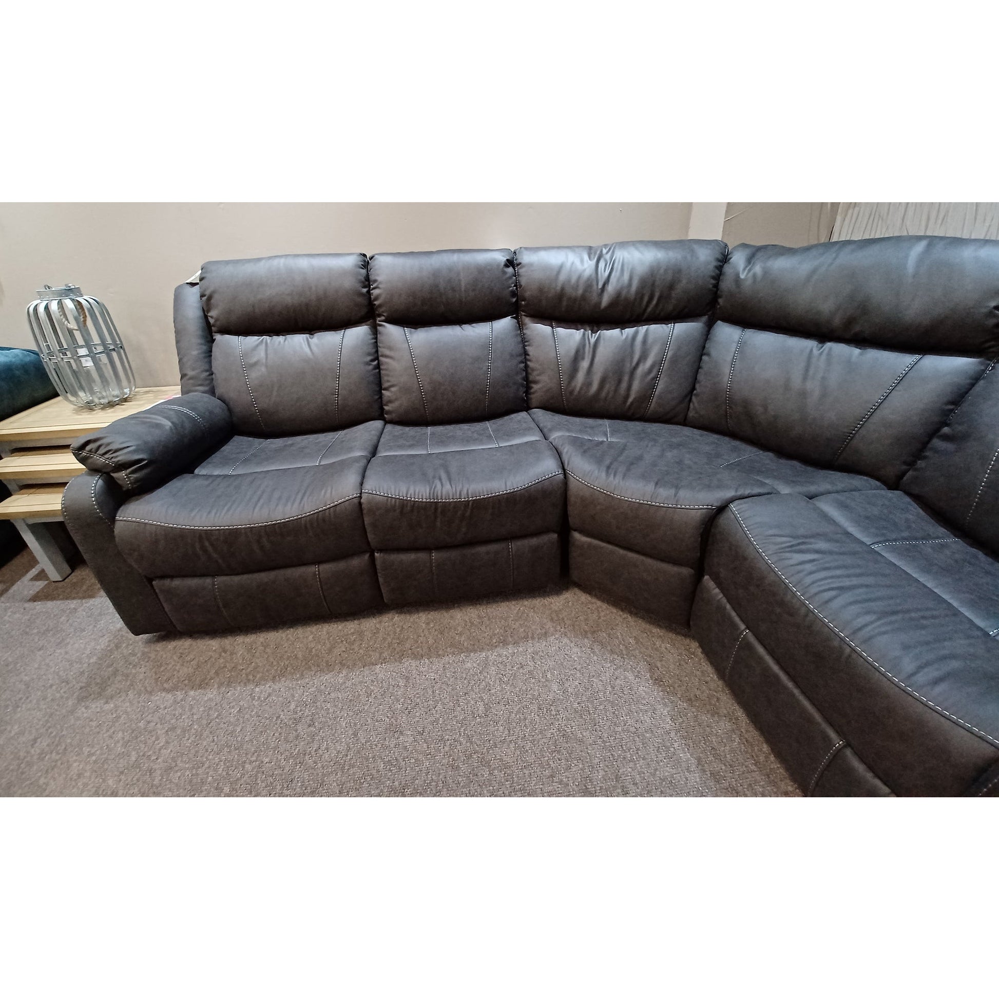 The Joel Corner Seater Sofa Set is an all reclining set and is covered in stylish shadow brown grey fabric. This recliner collection has a touch of class as well as superb comfort factor. The Joel has deep filled back support and cushioned armrests for maximum relaxation. Flexible fabric and exquisite piping create flawless lines in your living room. This corner suite comes with a wireless charger pad and storage unit for all your remotes. The This suite is available in a range of any desired combinations so you can create your own custom made corner sofa which will fit your room perfectly both in terms of size and your own personal style. This corner suite is exclusive to Caffrey's!