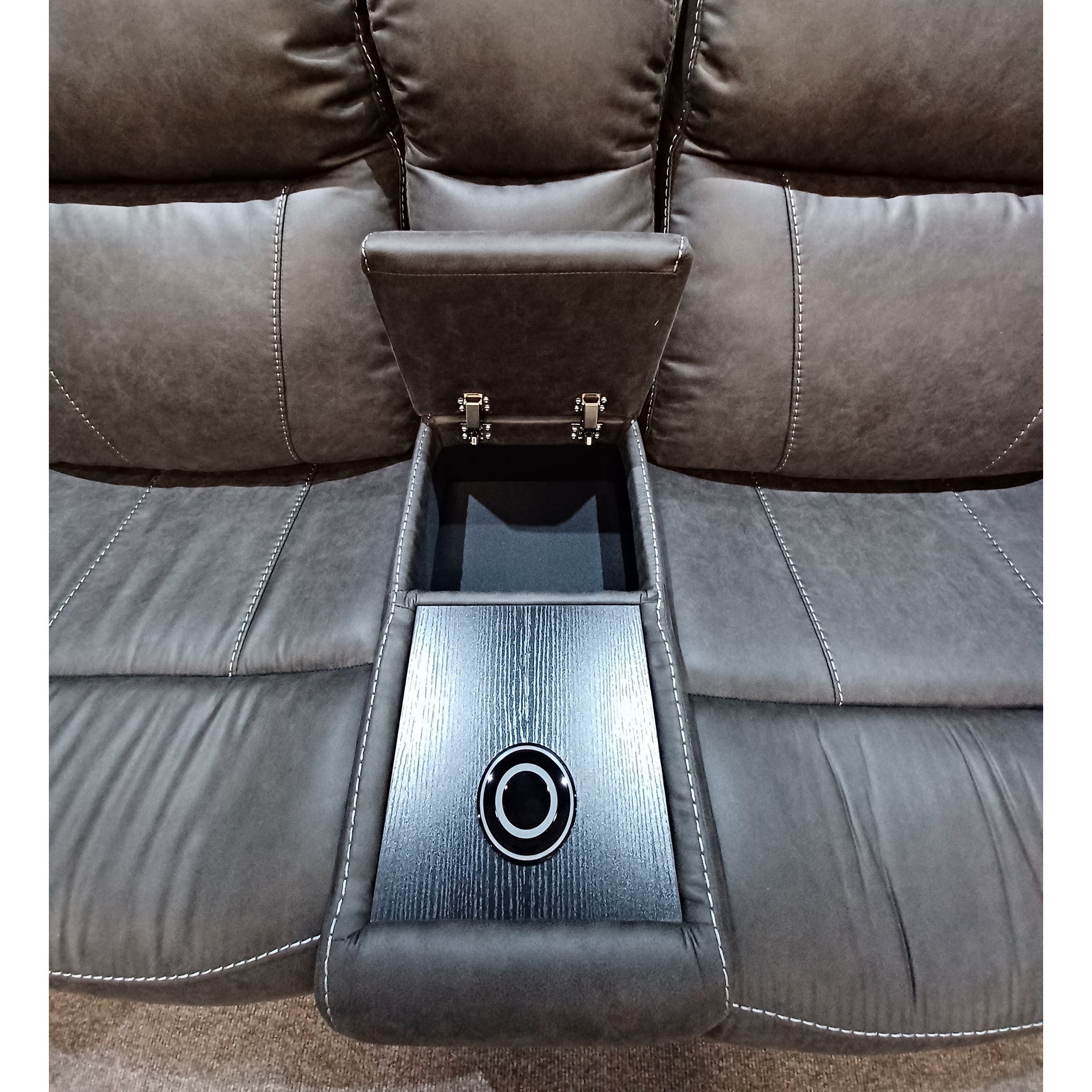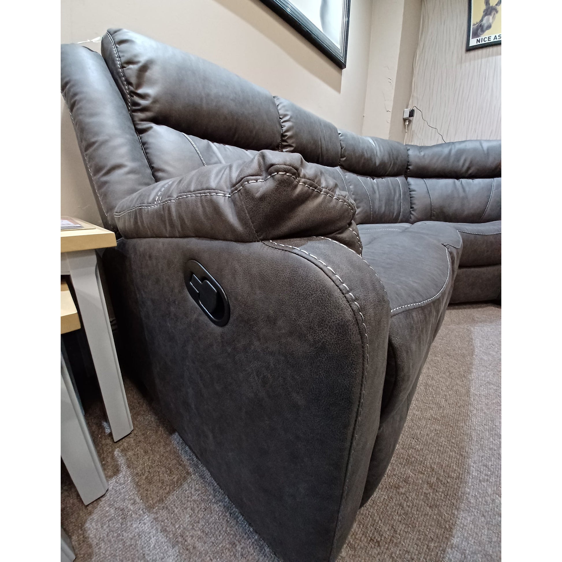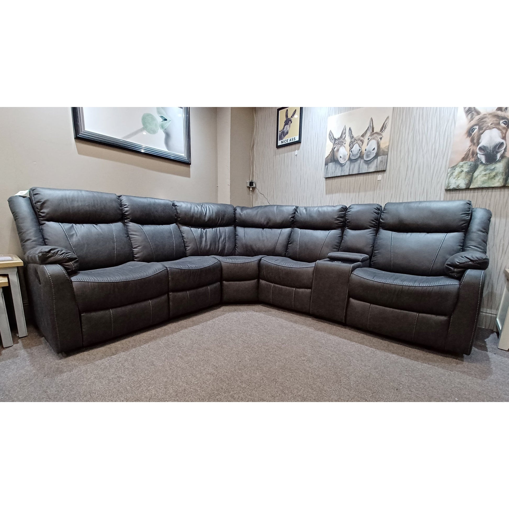 The Joel Corner Seater Sofa Set is an all reclining set and is covered in stylish shadow brown grey fabric. This recliner collection has a touch of class as well as superb comfort factor. The Joel has deep filled back support and cushioned armrests for maximum relaxation. Flexible fabric and exquisite piping create flawless lines in your living room. This corner suite comes with a wireless charger pad and storage unit for all your remotes. The This suite is available in a range of any desired combinations so you can create your own custom made corner sofa which will fit your room perfectly both in terms of size and your own personal style. This corner suite is exclusive to Caffrey's!