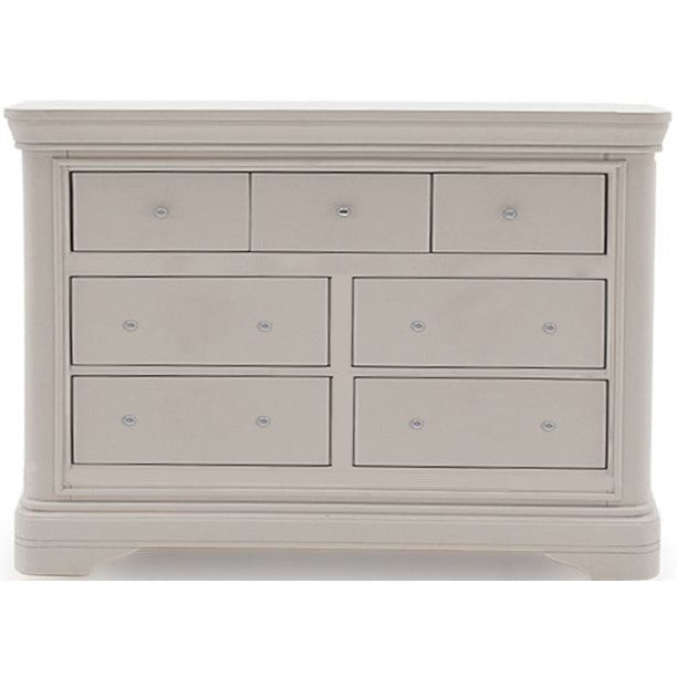 In an effort to give this range the ability to add bliss to your bedroom, every component of the Mabel collection is designed to emphasise the natural beauty of the wood. The taupe painted range features silver handles and elegant curves, and its robust design makes it both beautiful and practical for storage solutions.