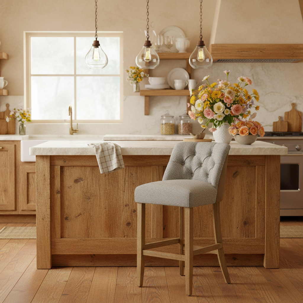 Caffrey's proudly presents the Mayfair Dove and Tan! The Mayfair Bar Stool offers a cushy seat and back padded for comfort to allow you to sit for extended periods of time. All is upholstered in a beautiful Dove coloured Tweed fabric that is complimented with a Tan leather back, creating the latest style trend. Composed of a solid wooden frame with a mid oak finish, this fabulous fixed height design brings a quartet of legs together as a sturdy and stable base. It's not many bar stools or counter stools that can offer this much comfort. Beautifully formed, it will enhance any kitchen island.