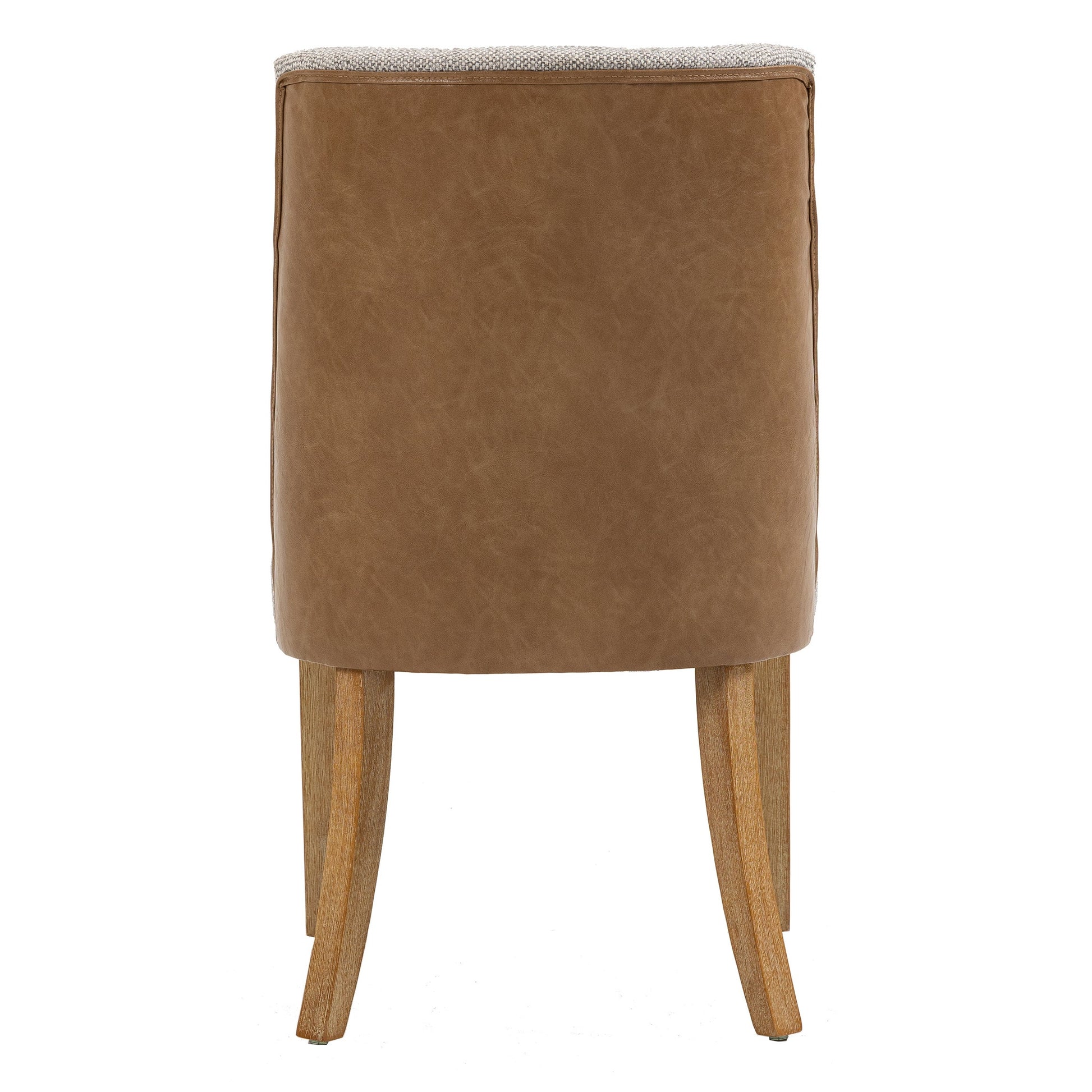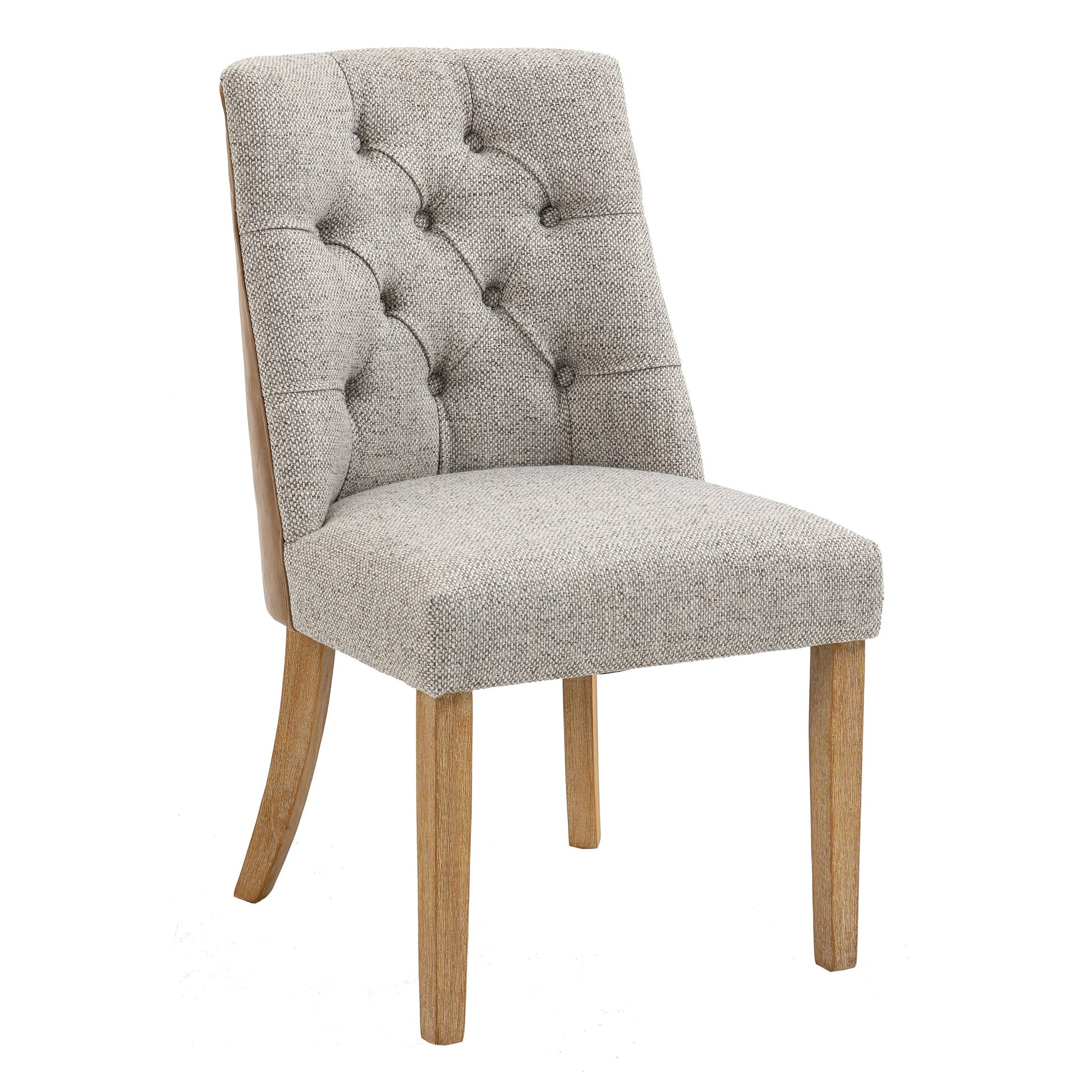 Caffrey's proudly presents the Mayfair Dove and Tan! The Mayfair Dining Chair offers a cushy seat and back padded for comfort to allow you to sit for extended periods of time. All is upholstered in a beautiful Dove coloured Tweed fabric that is complimented with a Tan leather back, creating the latest style trend. Composed of a solid wooden frame with a mid oak finish, this fabulous fixed height design brings a quartet of legs together as a sturdy and stable base. Beautifully formed, it will enhance any dining table gathering.