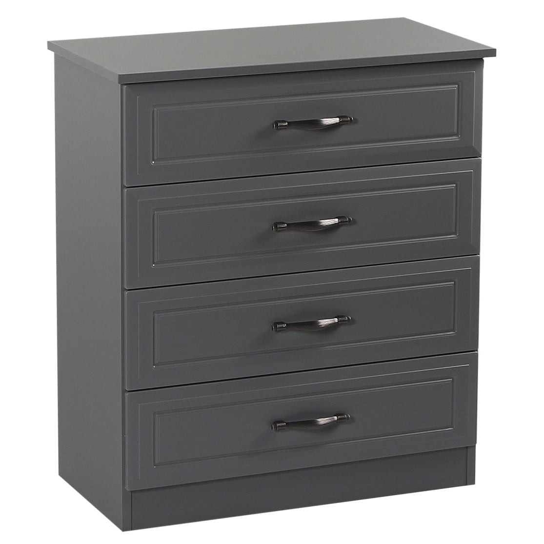 Introducing the Metro four drawer chest by Gleneagle. This bedside chest has subtle detailing which results in a beautiful chest which coasts wood effect drawers, tops and modern drawer internals. The reeded handle gives this range a nice twist. The Metro comes in two colours grey or white. It is delivered fully assembled.