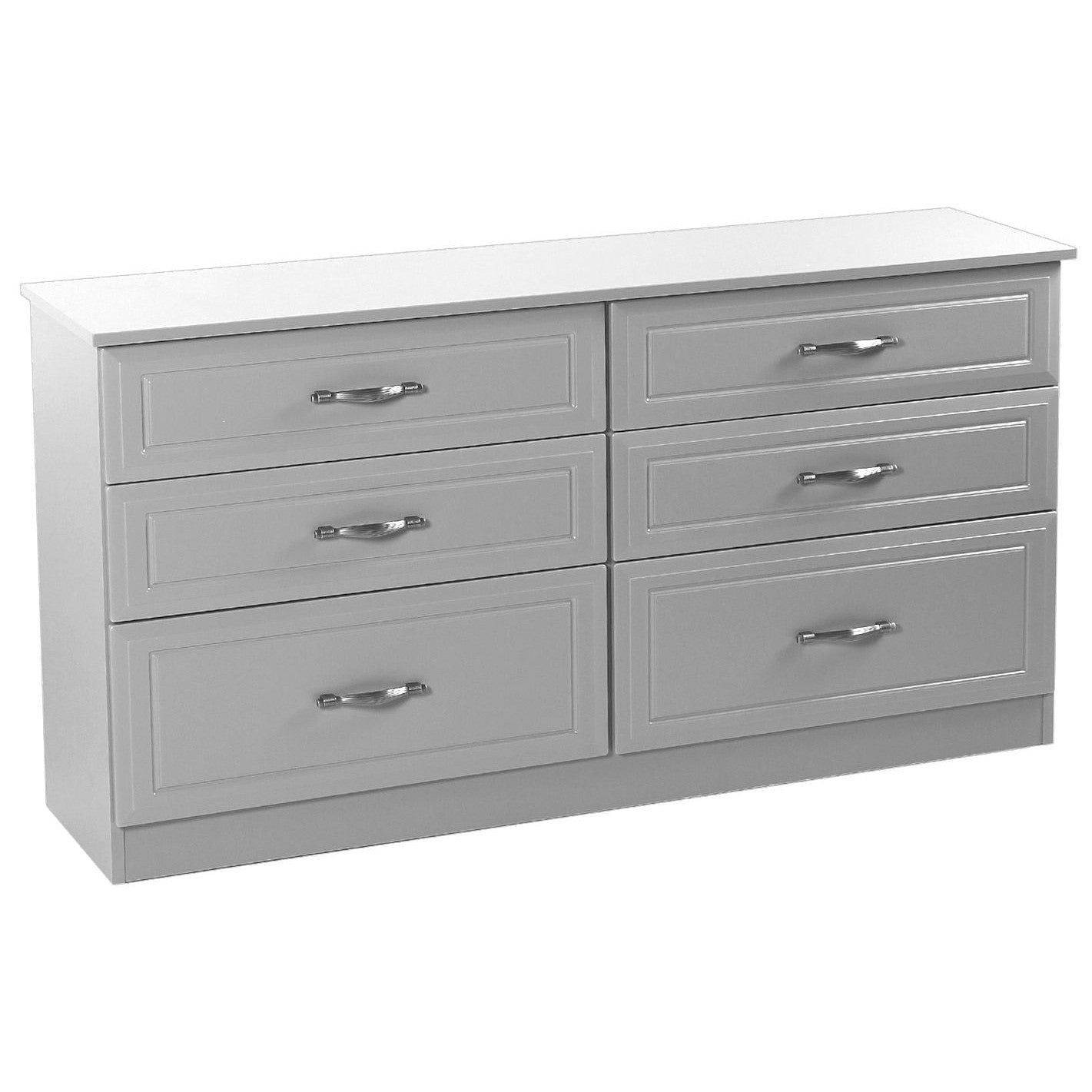 Introducing the Metro Grey six drawer long chest by Gleneagle. This bedroom chest has subtle detailing which results in a beautiful chest which coasts wood effect drawers, tops and modern drawer internals. The reeded handle gives this range a nice twist. The Metro comes in two colours grey or white. It is delivered fully assembled.