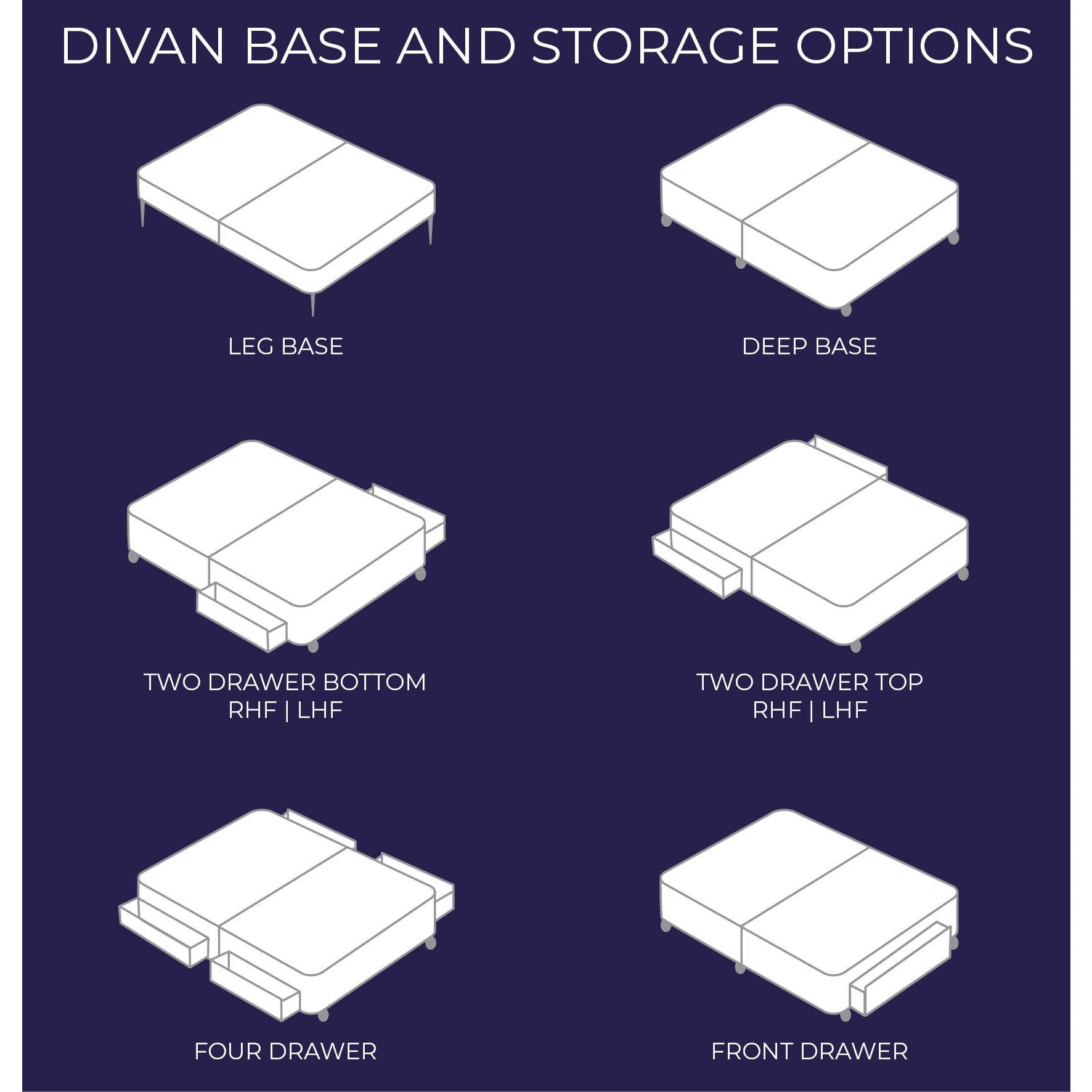Our divan bases are beautifully finished with great detailing and clean pleats, giving the base its elegant design. Upholstered in luxury fabric in Oldcastle Co. Meath, you can match this base with one of our luxury headboards to provide the perfect finishing touch to your bedroom.