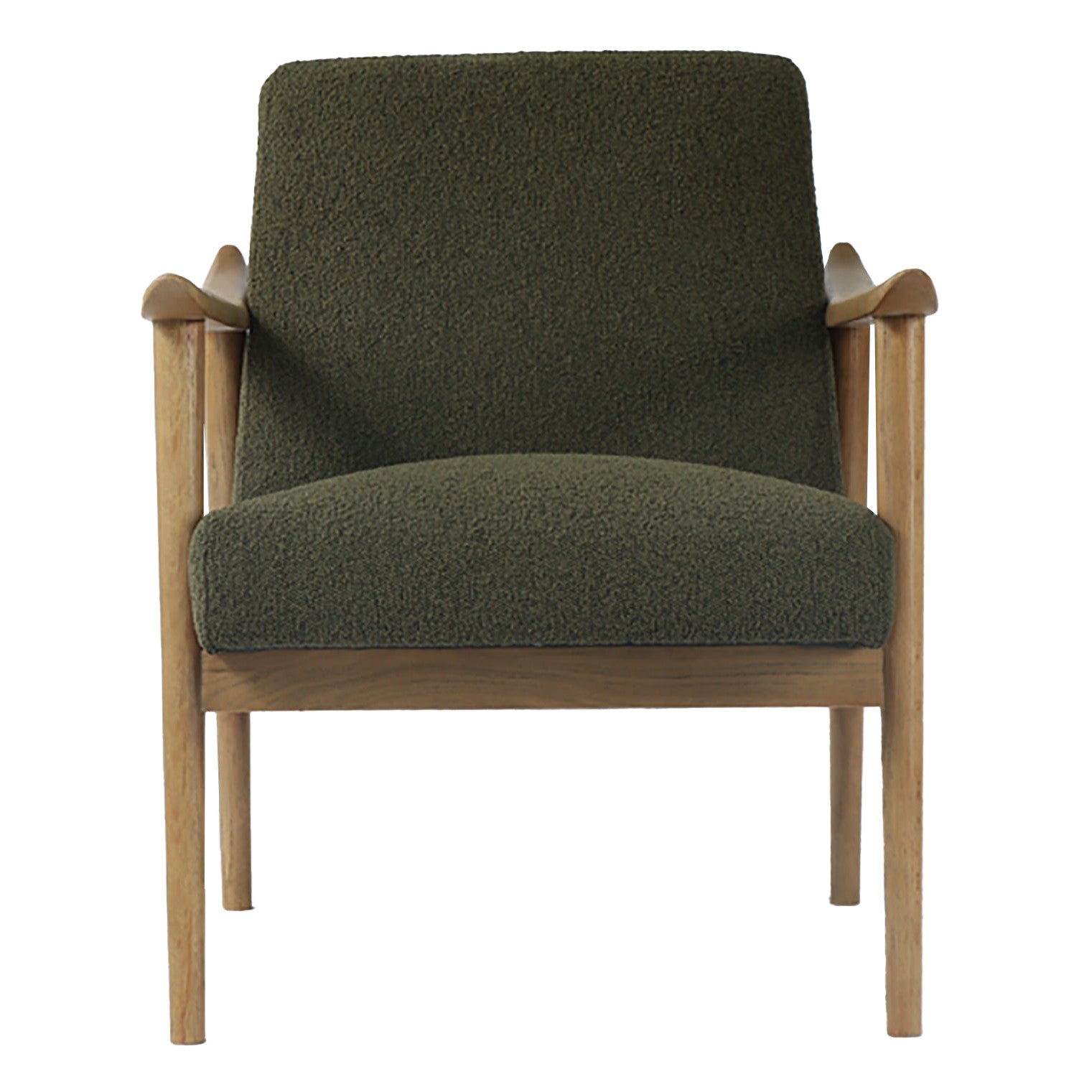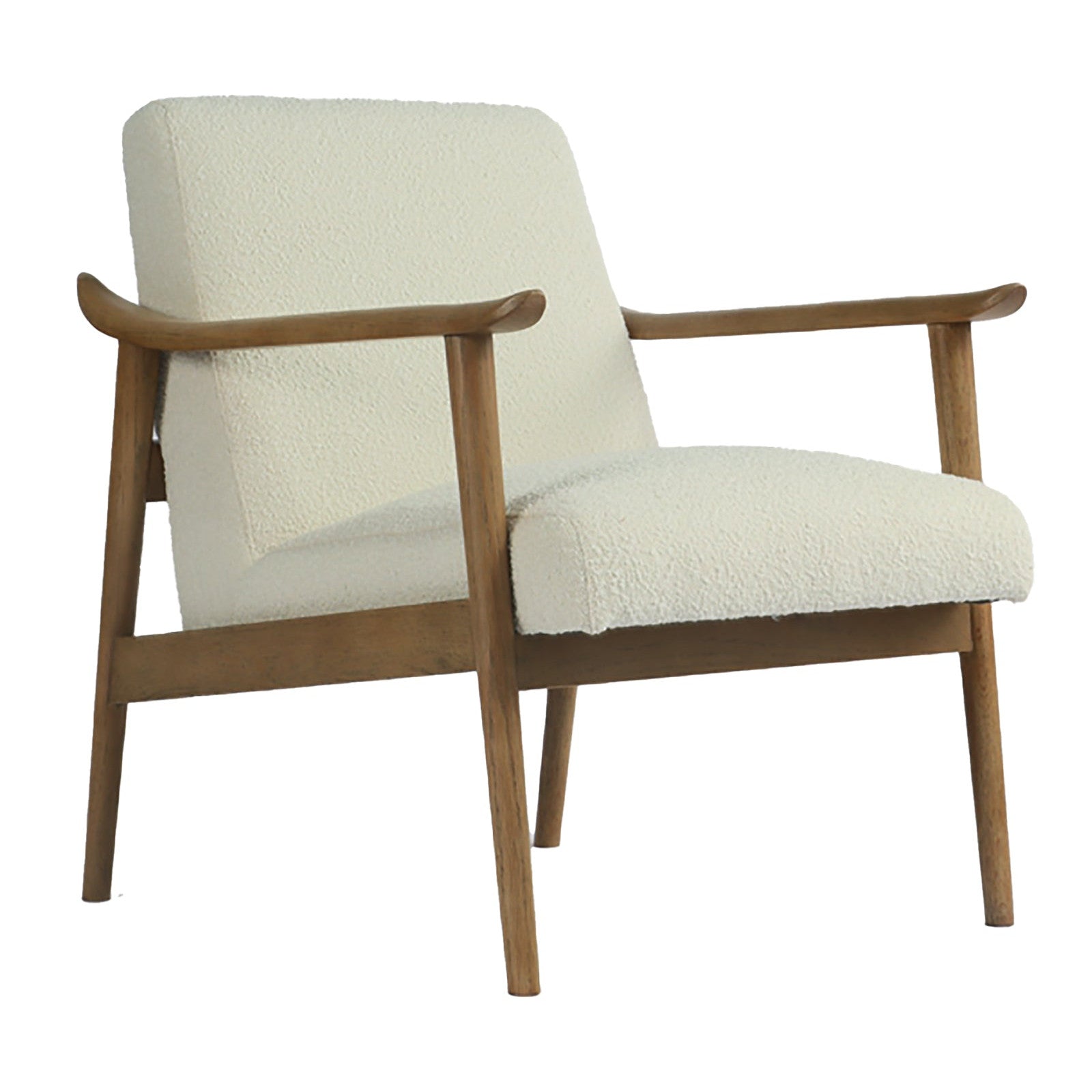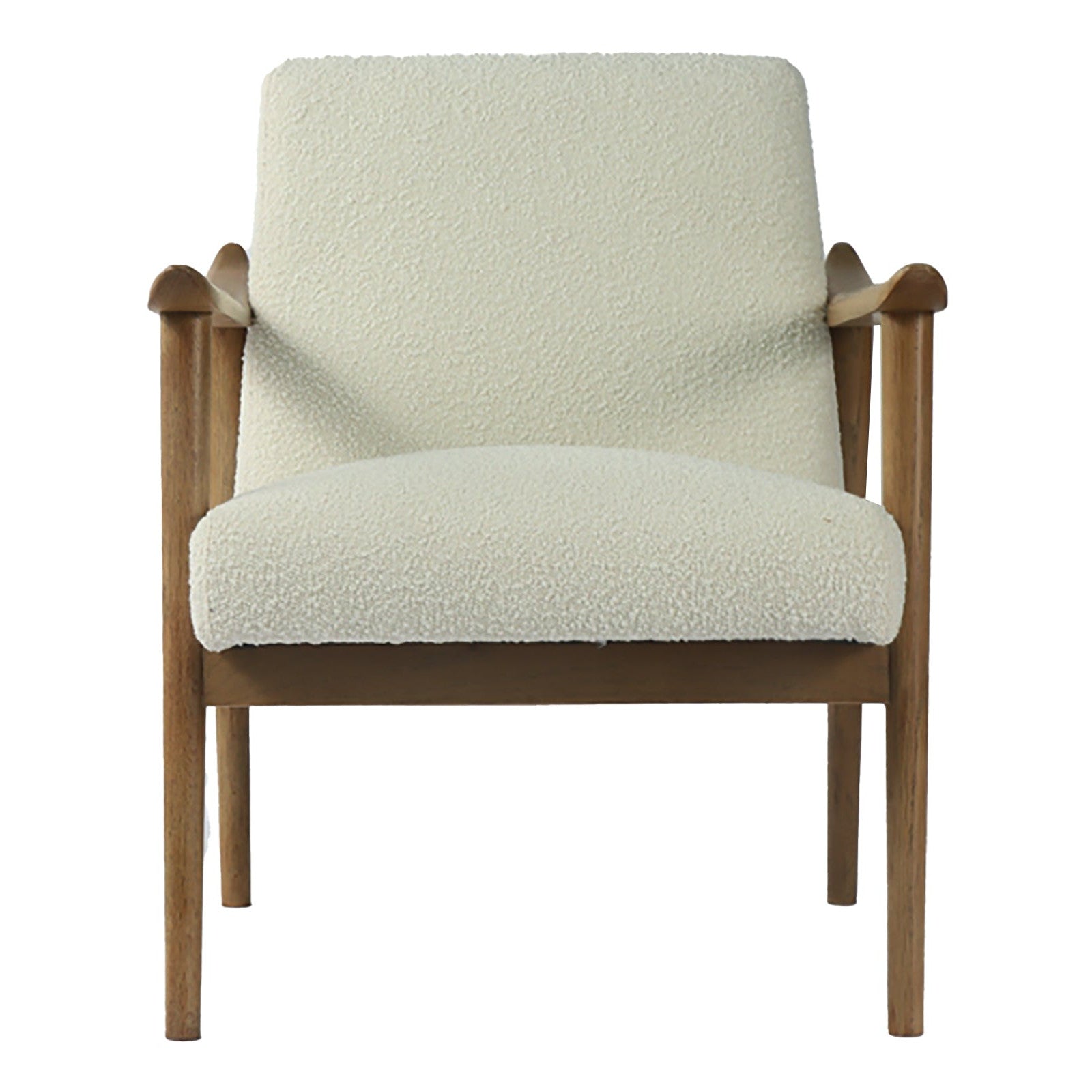 The Oliver Occasional Chair is a fantastic and handsome looking armchair that creates an alluring and sophisticated vibe to any room. To create a new appearance in your living room, this armchair will offer some exquisite expert craftsmanship that is unique, bold and effortlessly executed. This luxurious occasional chair, crafted from soft bouclé fabric has an elegant, modern, and lasting appeal to impress everyone with ease, style, and natural texture. It has a distinctly polished look accentuated by the sculptural arms and bouclé fabric. The padded seat and unique designed padded back armchair with wooden frame and legs enhance the beauty and elegance of the product and make it look more natural and interesting.