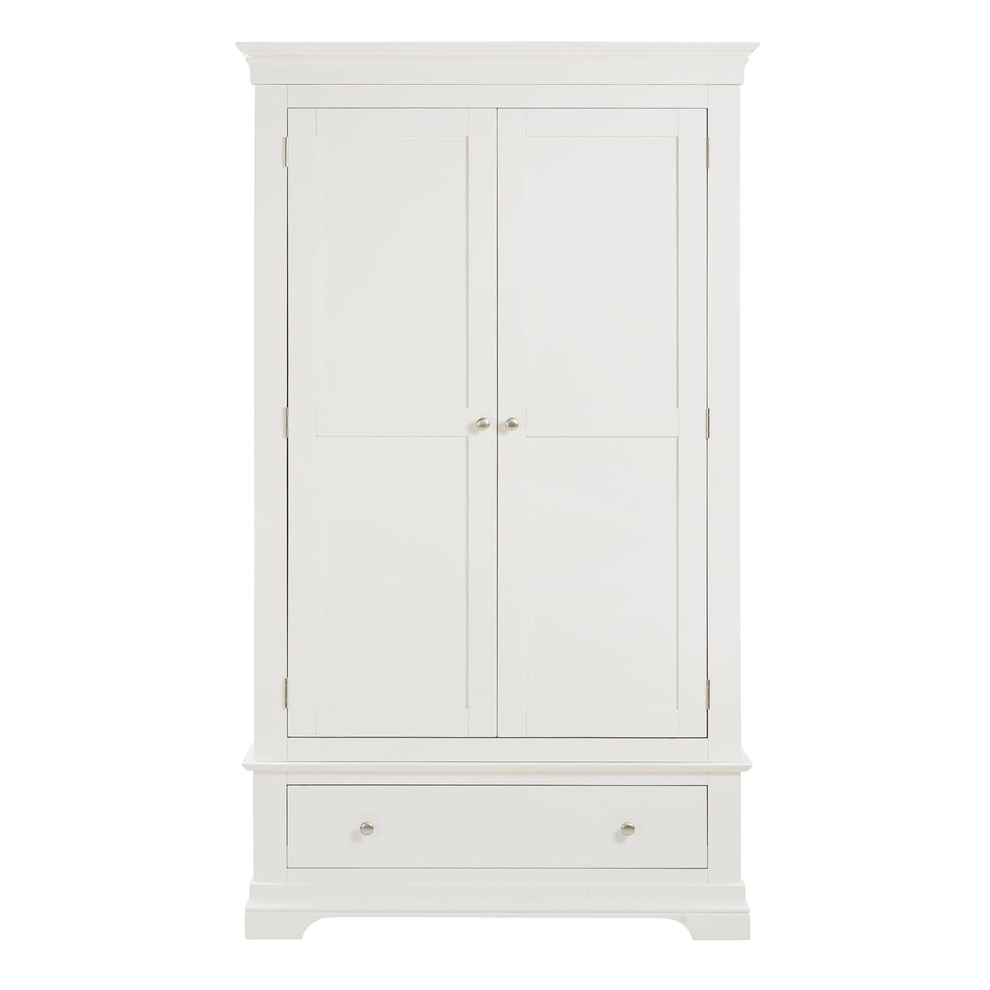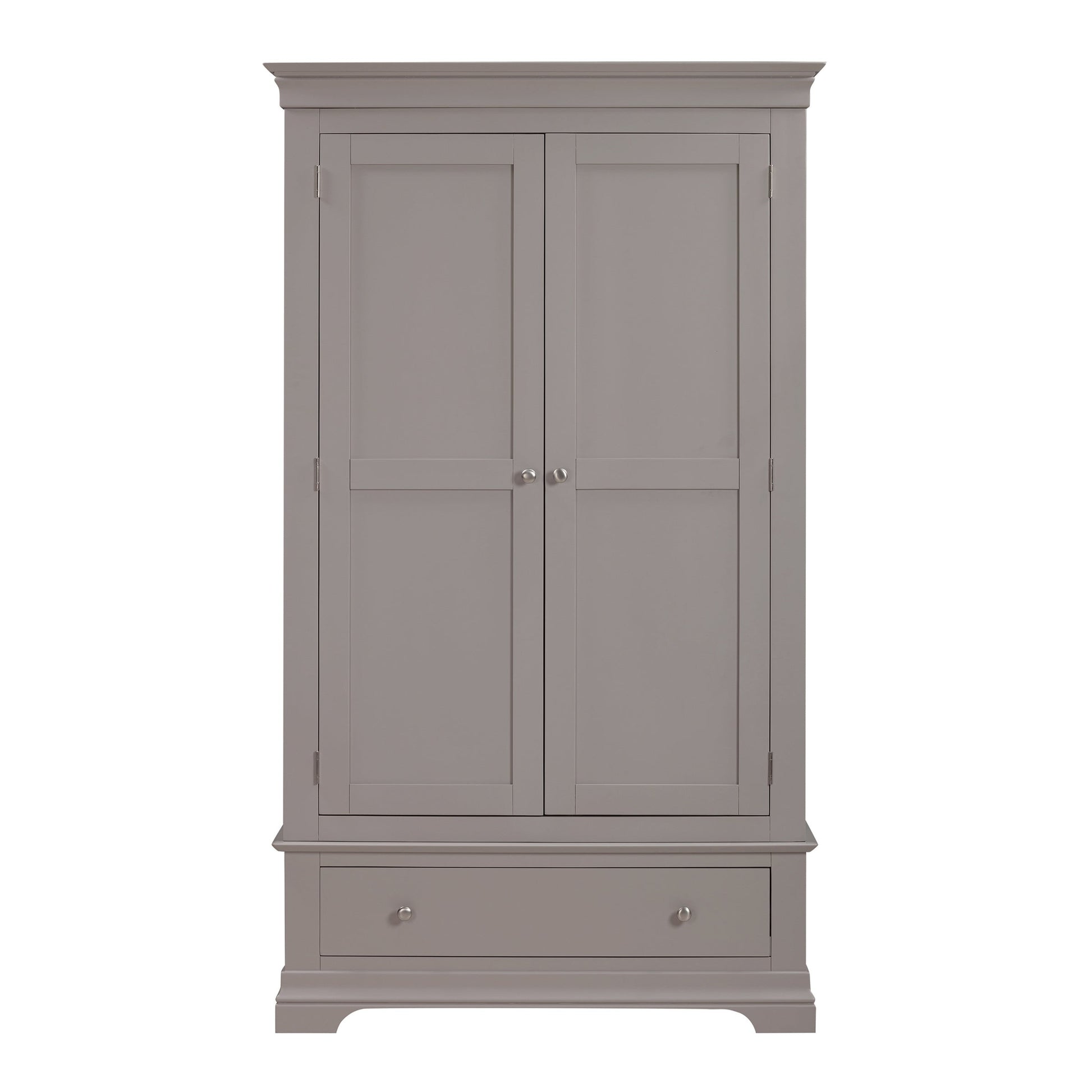 Blending generous storage with timeless style, our Province two door wardrobe has been thoughtfully designed and expertly handcrafted to provide strength and stability for every day use. A single wooden rail offers ample room for hanging full-length garments while the surprisingly spacious bottom drawer provides additional storage close at hand for folded knits and accessories. Our much-loved Province collection is characterised by its timeless design, understated grey or white painted finish and light contemporary touches. It’s handcrafted with mortise and tenon solid wood frameworks for long-lasting durability and dovetail jointed drawers for added strength. A perfect range for the every day home.