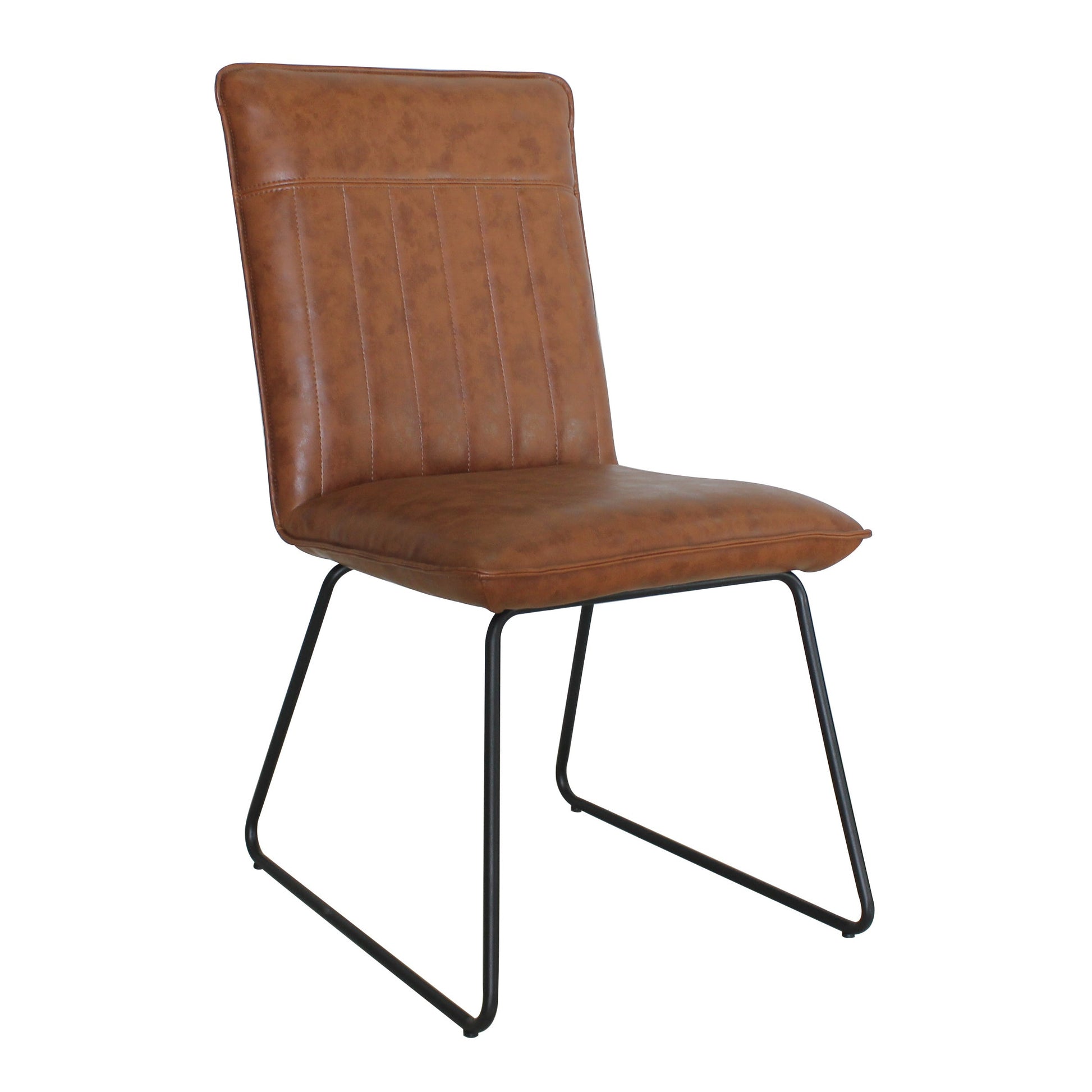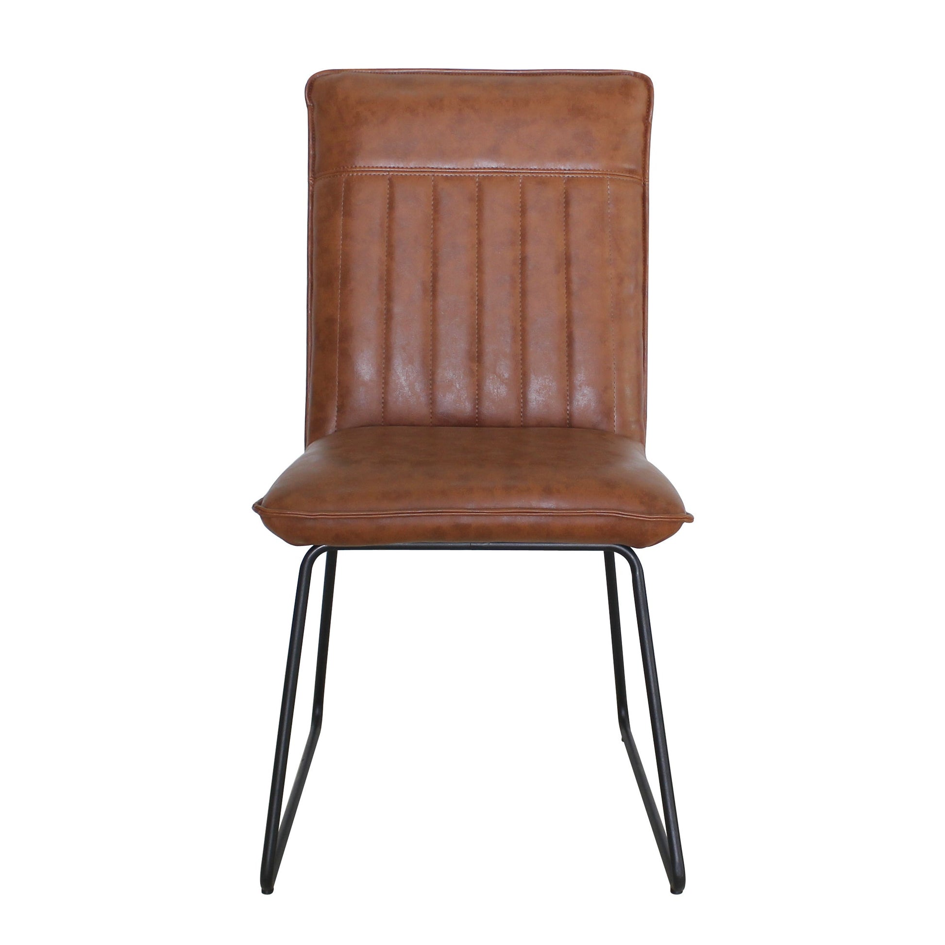Comfortably filled with subtle retro styling, the Richmond dining chairs are the softer side of the popular industrial furniture trend. This industrial-style dining chair is beautifully made, more chic than rustic, black powder-coated steel legs. These elegant metal-framed chairs are sturdy as well as inviting. They’re fully cushioned and upholstered in soft yet hardwearing faux leather in your choice of tan or dark grey. They’re great value too, which makes it easy to bring the industrial trend home. The Richmond chairs is part of our extensive retro range of dining room furniture. You can match these with so many different dining tables
