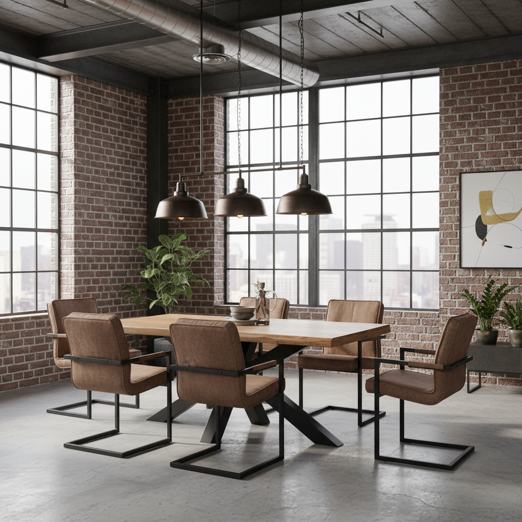A striking centrepiece, this Richmond dining table immediately catches the eye and brings your dining room together. The Richmond dining table is so on trend - and such fantastic value. This large industrial-style dining table is beautifully made, more chic than rustic, and has a solid oak dark wood top and black powder-coated steel spider leg base. At 210 cm long it easily seats eight guests. You can match any dining chair with this unique dining table!