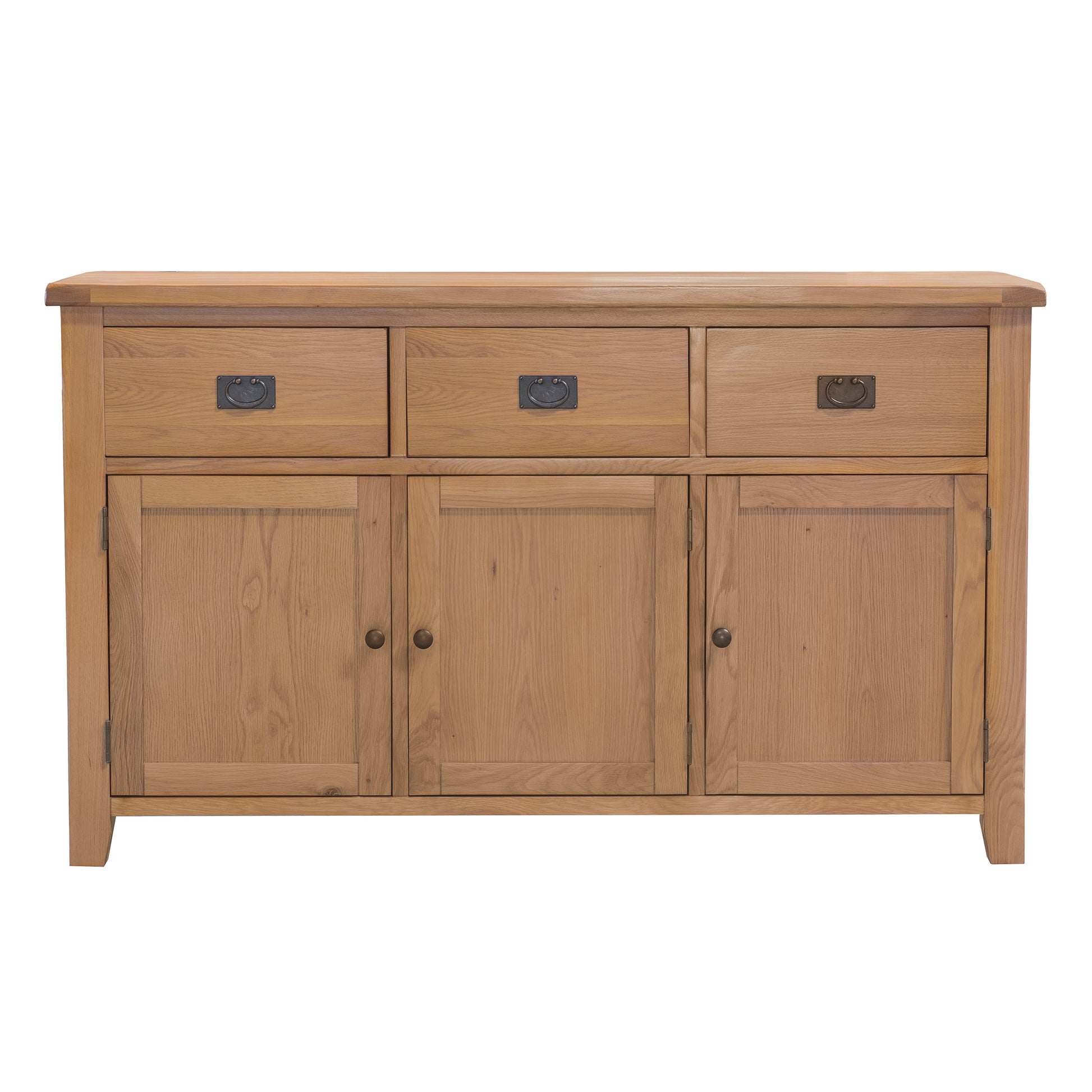 This wide chest is effortlessly stylish with plentiful storage space and a wonderful finish. Handmade from the finest cuts of premium grade solid oak, it's characterised by wooden dowel detailing, softly rounded edges and antiqued metal handles. Using a combination of modern and traditional woodworking techniques, our experienced craftsmen ensure a robust and authentic build. At the top of this sideboard sit three generously-sized drawers made with solid oak linings for exceptional durability. Below there are four other drawer spaces for the most efficient use of space. To finish, the chest is treated with wax for a warm, subtly aged appearance.