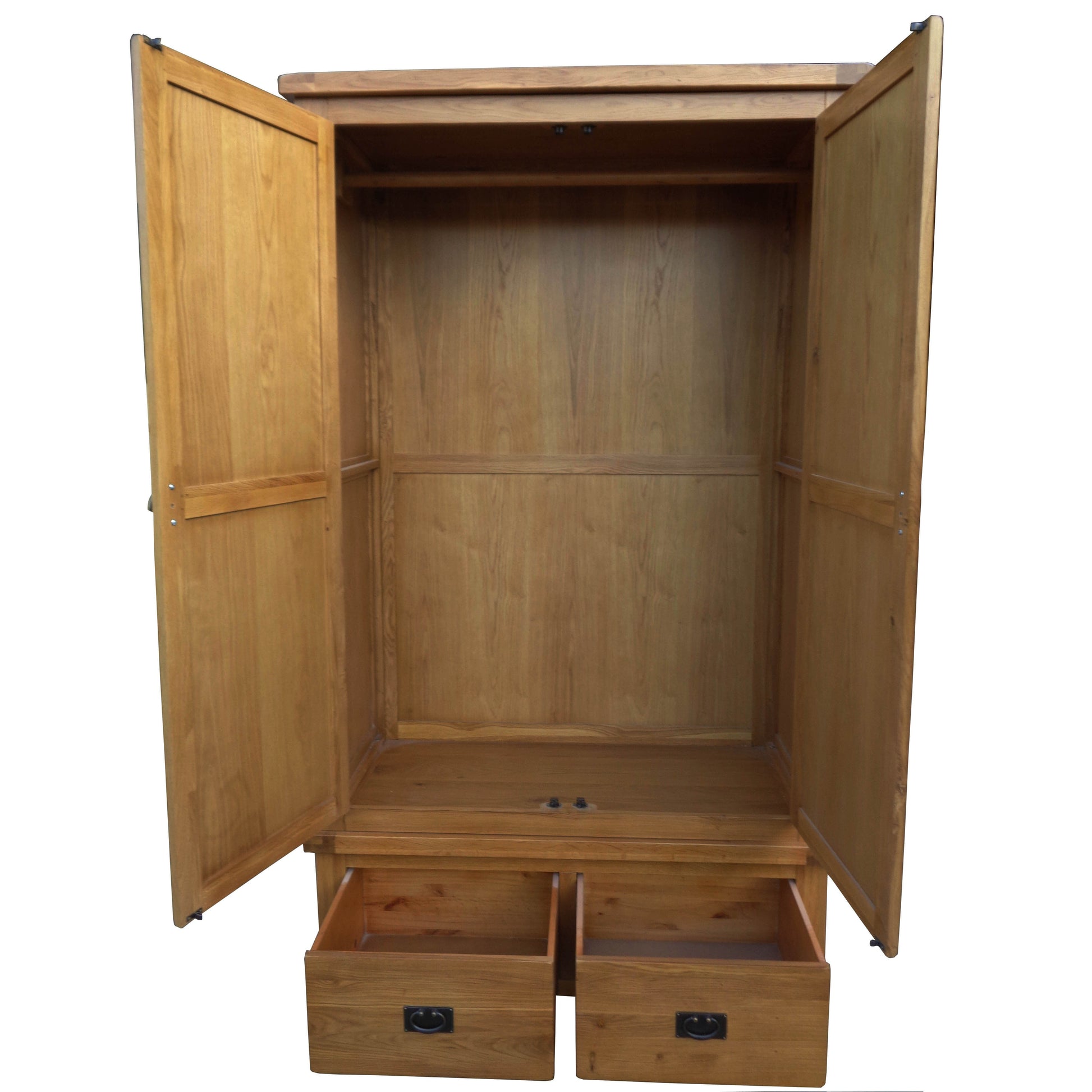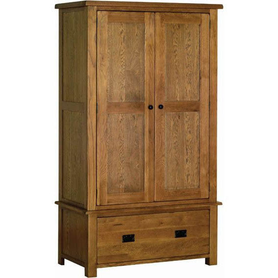 This Saoirse double wardrobe is effortlessly stylish with plentiful storage space and a wonderful finish. Handmade from the finest cuts of premium grade solid oak, it's characterised by wooden dowel detailing, softly rounded edges and antiqued metal handles. Using a combination of modern and traditional woodworking techniques, our experienced craftsmen ensure a robust and authentic build. At the bottom of this cabinet there sit two generously sized drawers made with solid oak linings for exceptional durability. Above the drawers sit two large cupboard spaces for the most efficient use of space. To finish, the cabinet is treated with wax for a warm, subtly aged appearance.