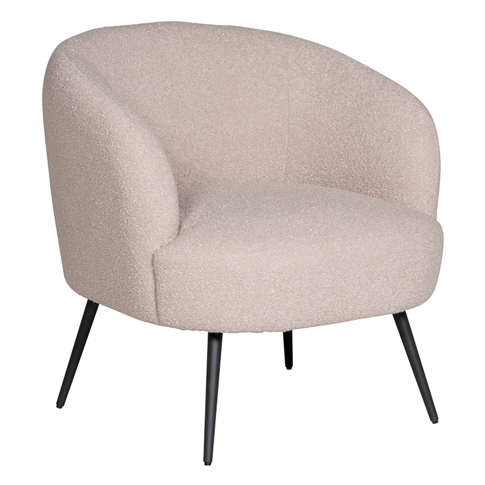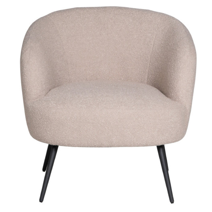 The snug Shelbie accent chair's boucle fabric comes in four striking colours, cream and rust, making it a brilliant statement piece in your home. This foam seat is balanced on four stunning black powder coated metal legs. Enhance your living space to another level with the addition of the Shelbie accent chair!