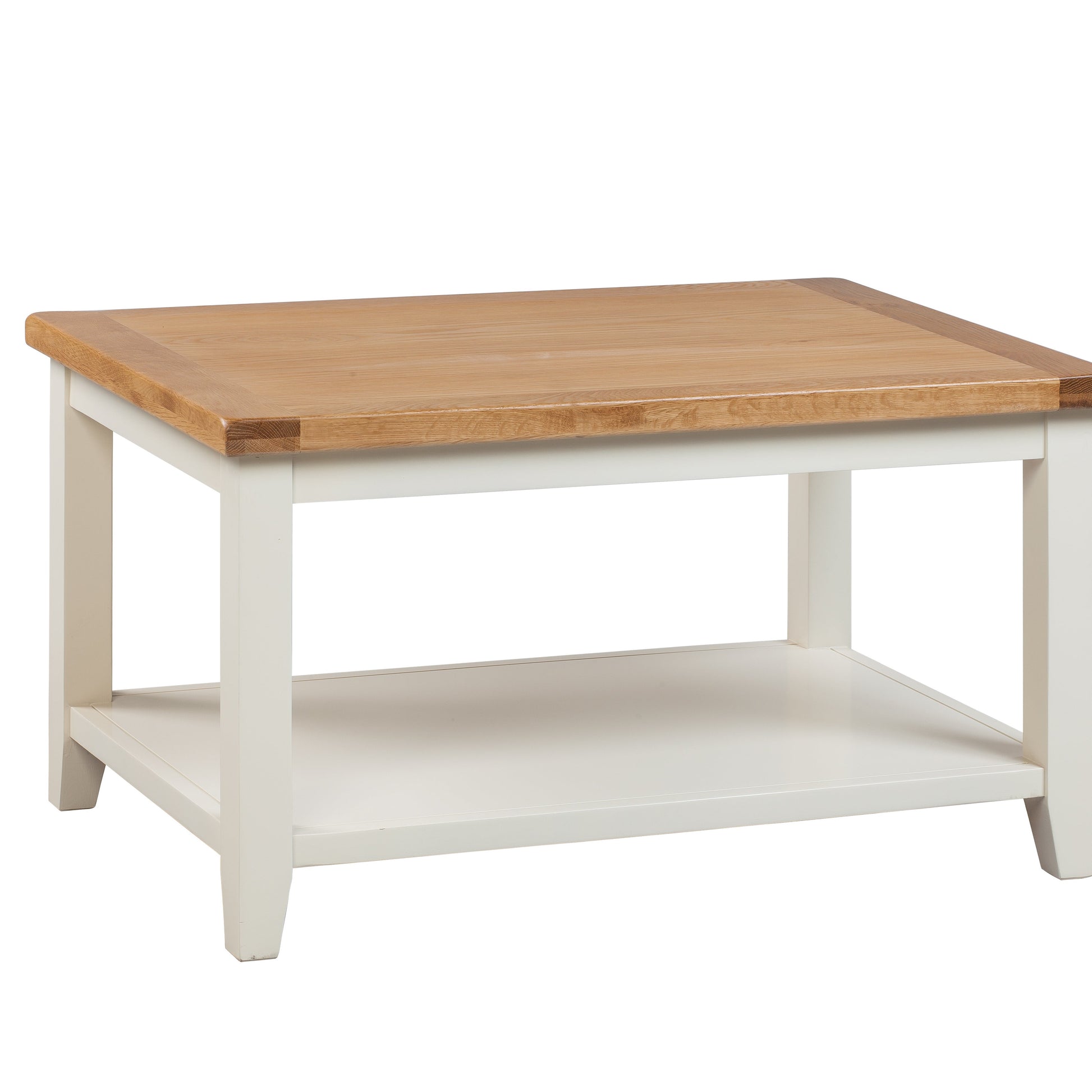 A sturdy piece of furniture, the Skellig coffee table is made from painted solid hardwood and topped with natural oak. This stunning cream & oak table is designed to impress, with its modern feel, light painted finish. The whole piece has a robust quality that will add character to your dining room or living room.