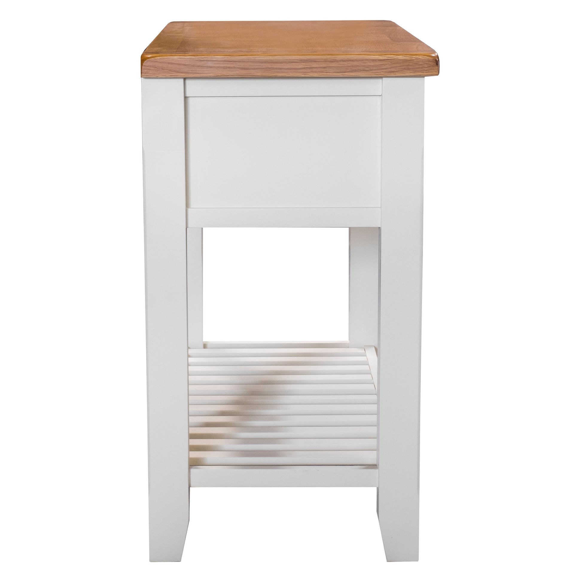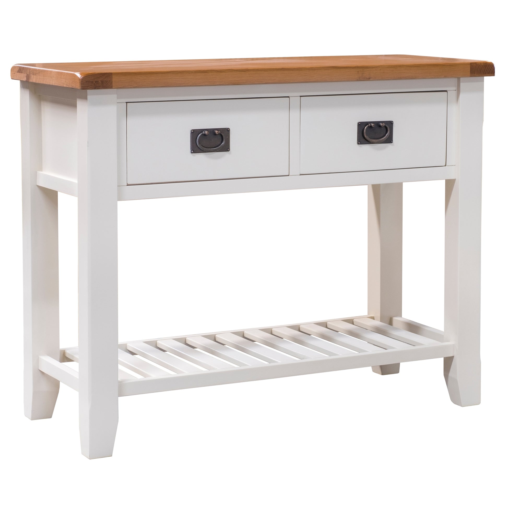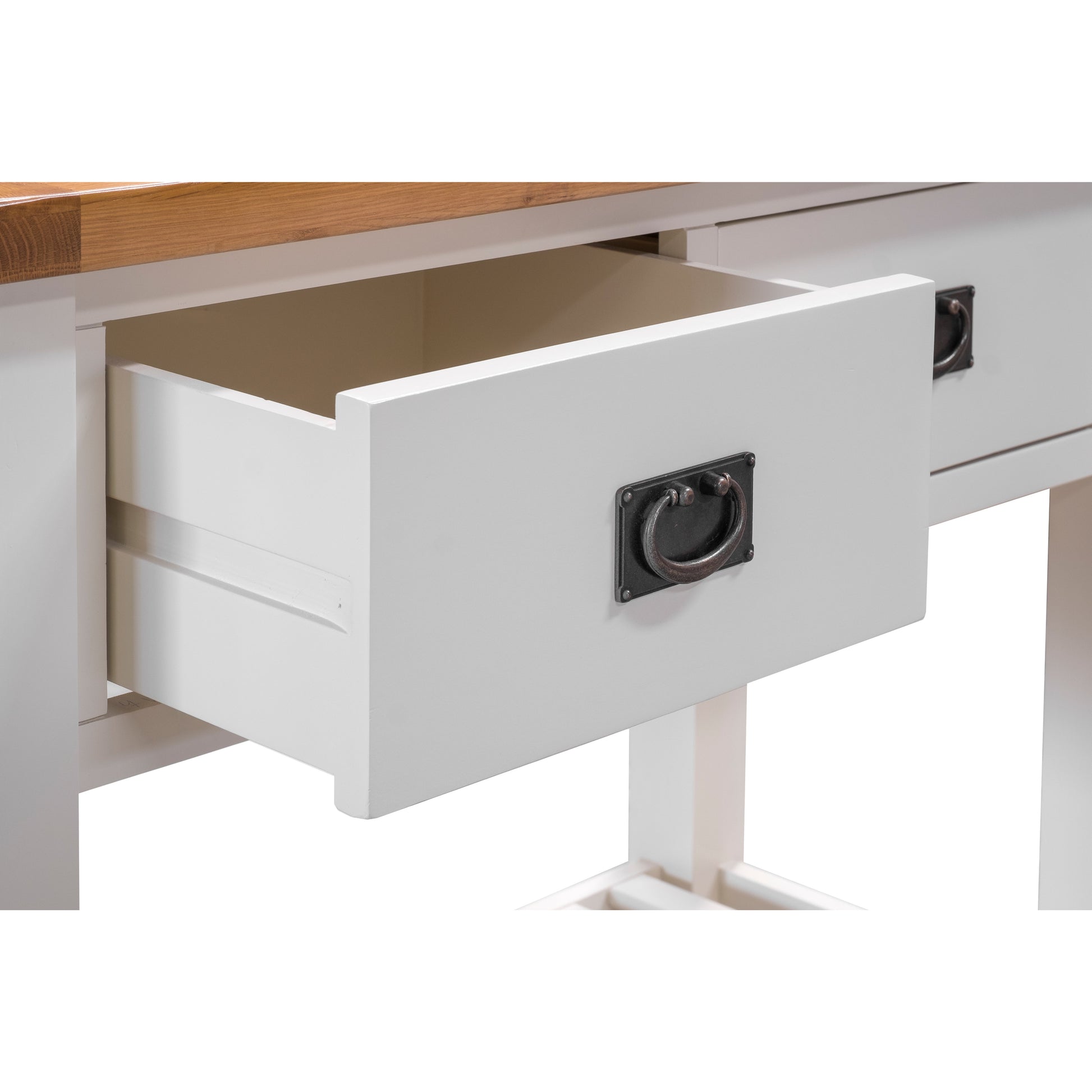 A sturdy piece of furniture, the Skellig cream and oak large console is made from solid painted cream solid hardwood and topped with natural oak. This stunning console is designed to impress, with its modern feel, light painted finish and metal handles. There’s ample space for kitchen and living storage. The whole piece has a robust quality that will add character to your dining room or living room.