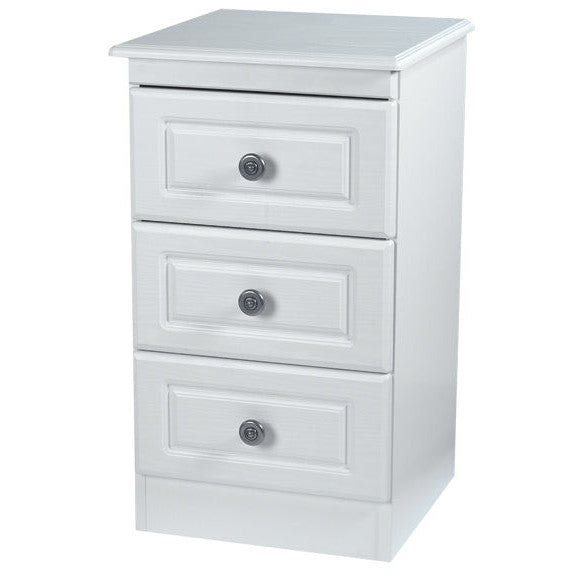 A neat, stylish locker with crisp clean edges, the Snowdon three drawer locker is a perfect fit in any bedroom. Subtle detailing results in a beautiful locker which coasts white wood effect drawers, tops and internals. It is a perfect match with any other bedroom furniture in the Snowdon Range. This quality furniture delivered fully assembled.