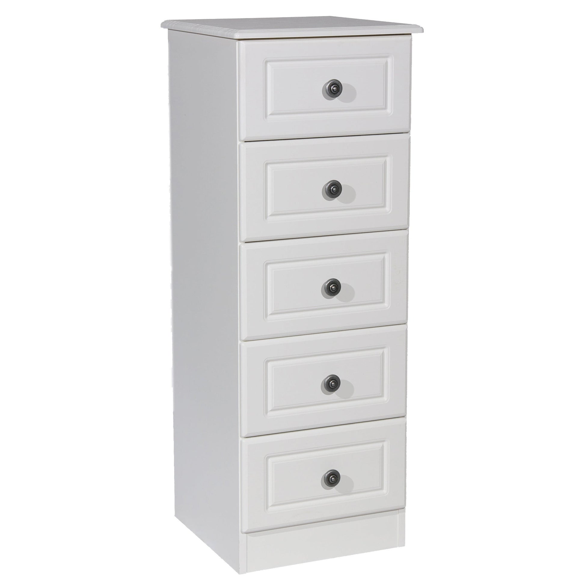 A stylish locker with crisp, clean edges the Snowdon five drawer locker is a perfect fit in any bedroom. This locker has added storage and also compliments other bedroom furniture from the Snowdon White range. Subtle detailing results in a beautiful white locker which details wood effect drawers and tops. This quality furniture delivered fully assembled.