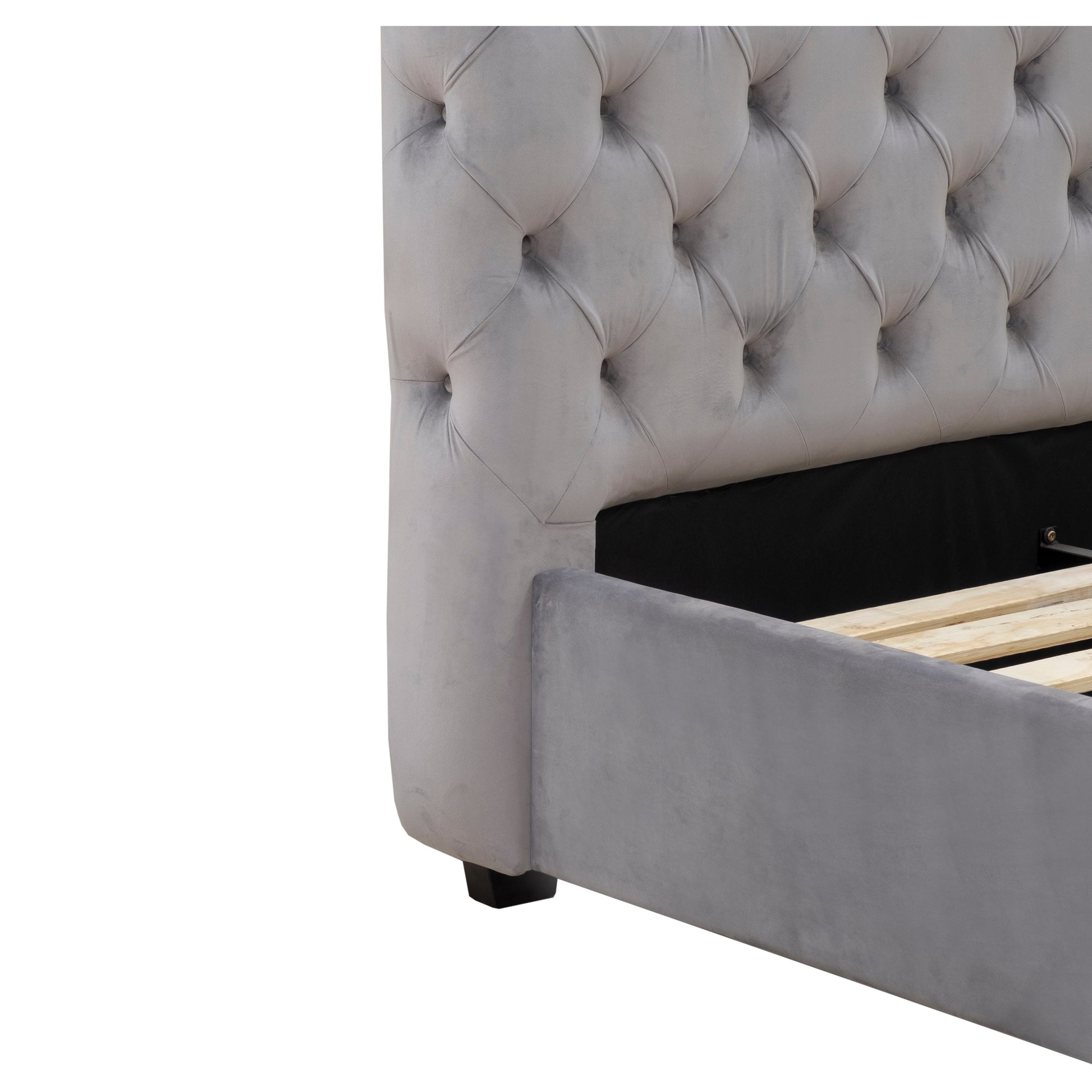 Elegant and luxurious, the handcrafted Sophia side-lift bed frame features a scrolling and sumptuously cushioned headboard and foot end. The headboard is lavishly buttoned, and the foot end is embellished with deep fluting. The dark wood feet complete its well-finished appearance. The Sophia is available in 2 sizes: King | Super King.