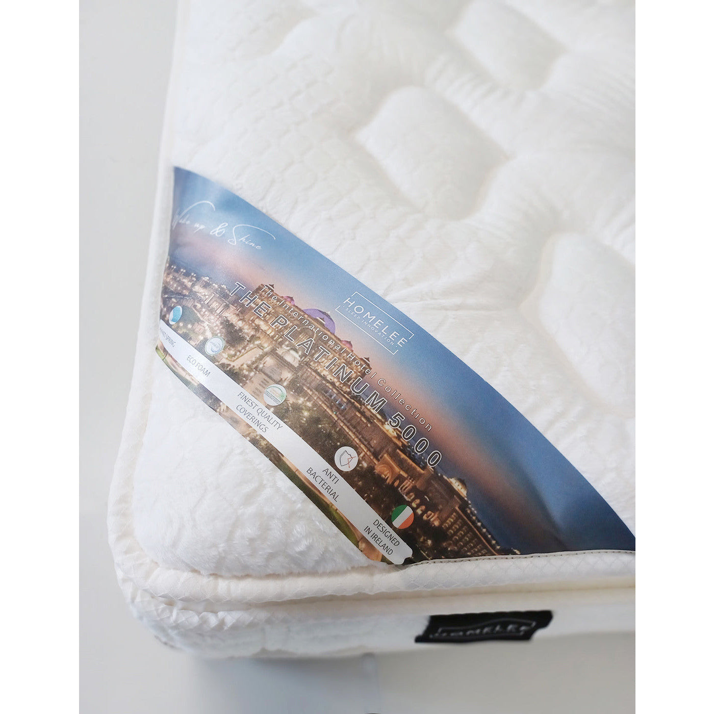 The Platinum 5000 Mattress delivers cutting edge comfort with its innovative famous pocket spring zoned support system. It has up to 5000 edge-to-edge springs, which spread your weight evenly across the whole mattress, giving you maximum sleep space. encased with foam to keep the mattress together for longer, a solid pillow top for an added extra support. This is part of the Homelee International Hotel Collection which is supplied to some of the worlds top Hotels. This mattress is finished with warm fabric, extra tack and jump quilting on top. Discover the full International Hotel Collection here online or instore.
