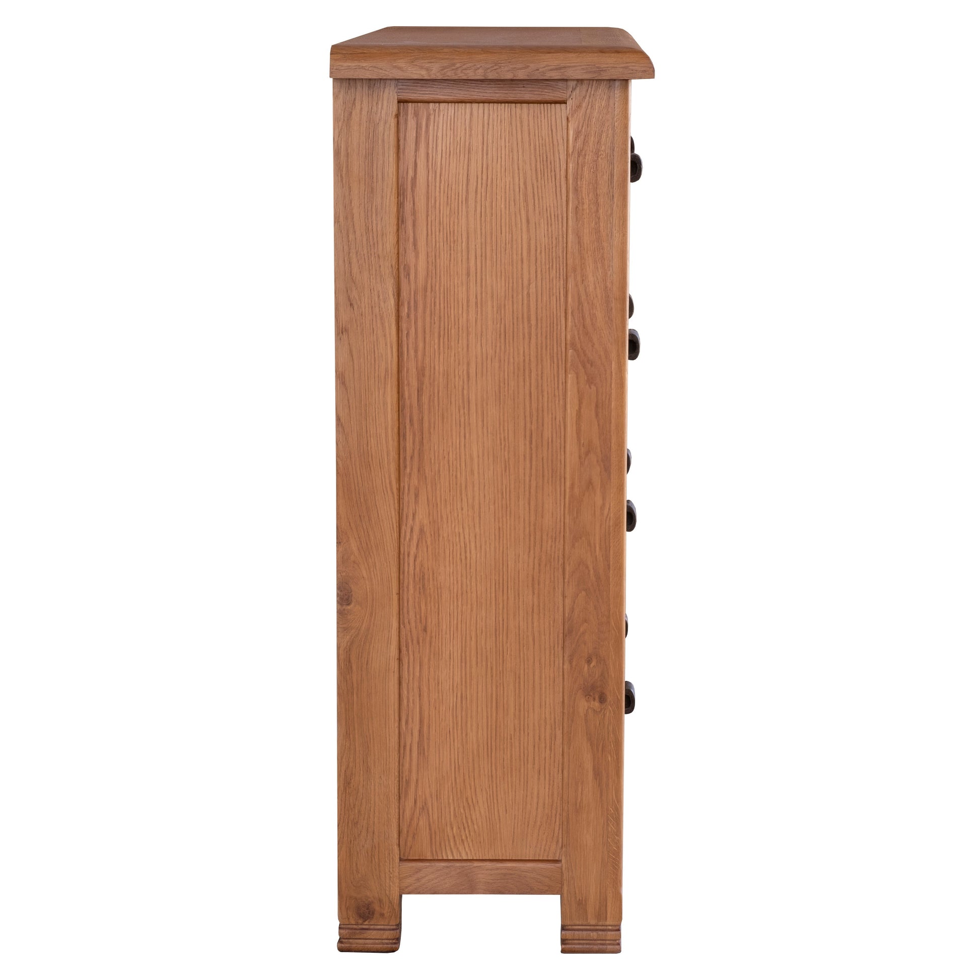 This fantastic-value Vermont oak 9 drawer wide chest ticks all the boxes. It’s beautifully crafted from solid oak. Pieces have clean lines and slim proportions so they suit smaller as well as larger rooms. The storage is effortlessly functional and easy to use with spacious drawers which maximise display space and are designed to store clothes, accessories and more. And the details are lovely, too, from the antique-finish handles to the smoothly rounded corners. Timeless in style, this is a fabulous addition to all rooms for all budgets.