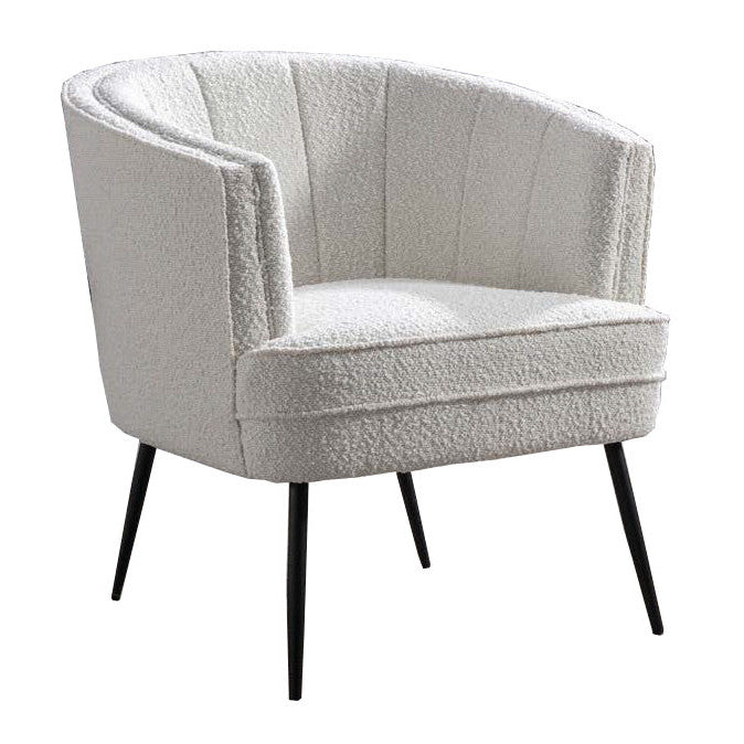 The Wendy tub chair has a simple yet stylish design, accentuated by the straight-line pull detail on the inside of the chair, which is separated from the inside of the chair by thick piping. Beautiful soft boucle fabric and tapered black metal legs take the Wendy to the next level. It's simple, but very effective for a pop of colour on any corner of your home.