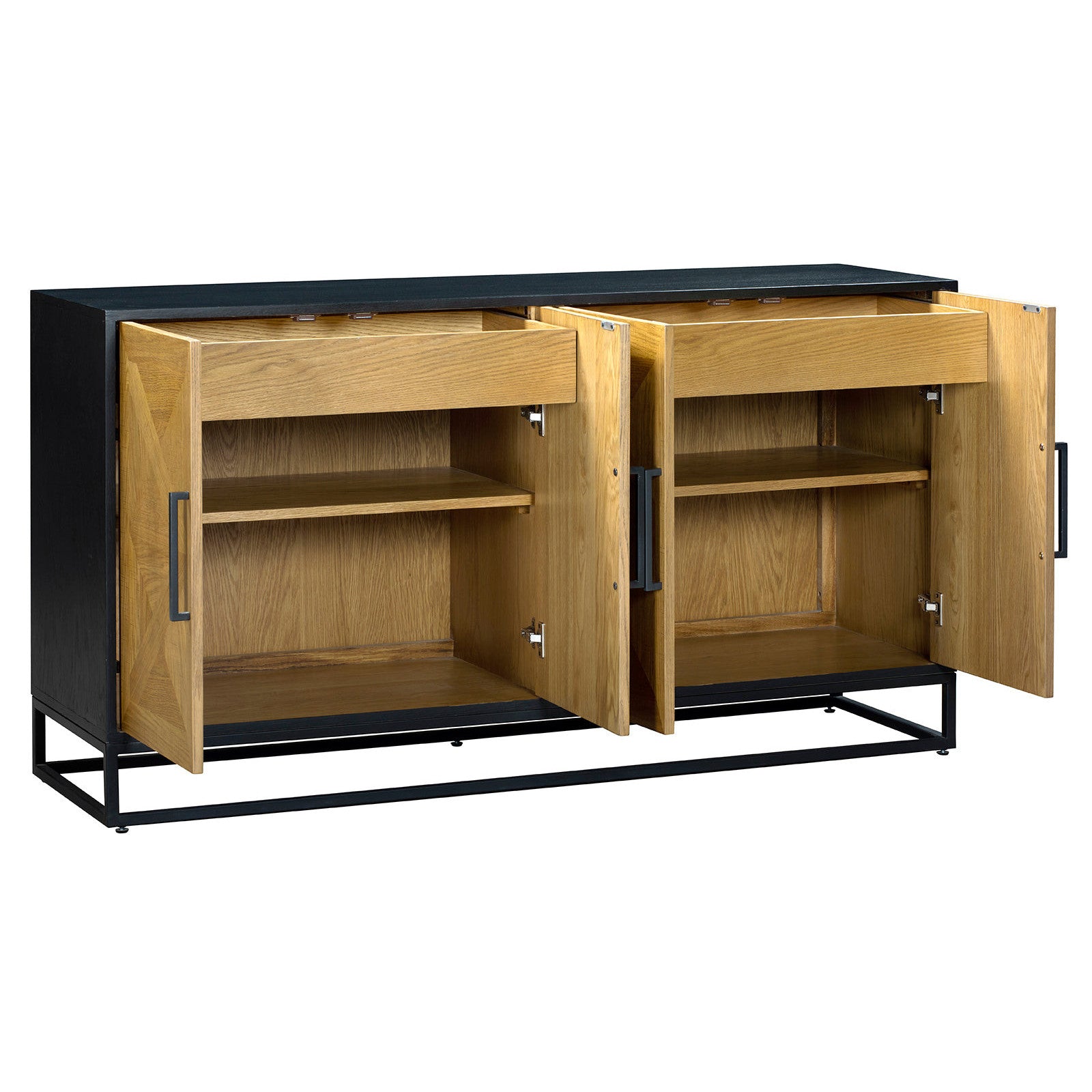 The Windsor oak 4 door sideboard with an interesting, unusual loft-style base is made of carefully selected natural oak wood. The warmth of the natural raw material combined with cold steel gives a delightful effect. With its bespoke tabletop pattern, this solid top is supported on a metal structure and is an ideal proposition for people who value original solutions. Thanks to its design, this modern oak sideboard is a great fit for any decor style.