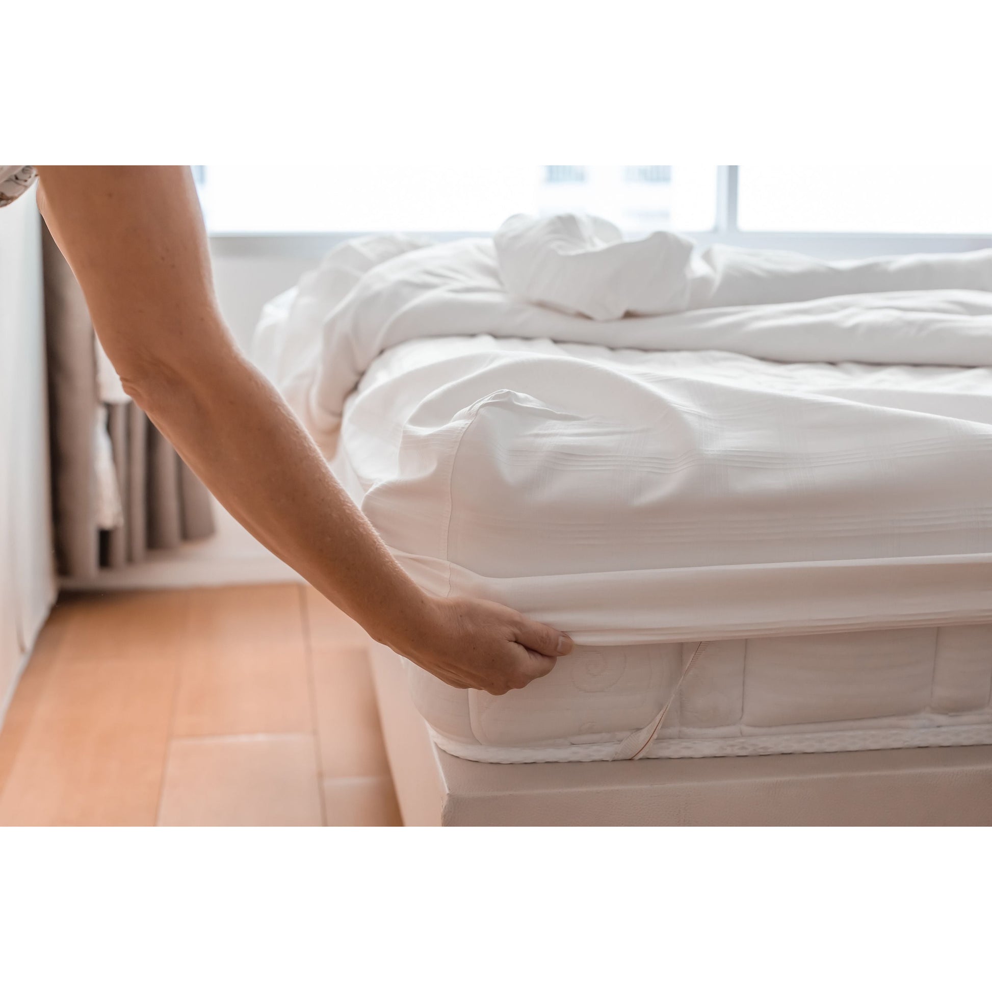 The easy stretch HOMELEE mattress protector is specially designed for a perfect blend of protection and comfort, keeping the mattress surface clean, fresh, breathable, soft and silky. The mattress protector features an intelligent water-resistant membrane that acts as a barrier, expertly protecting the mattress from spills, stains, dirt and dust. Its highly elastic skirt has excellent ductility to accommodate various mattress heights up to 30cm for a flawless fit.
