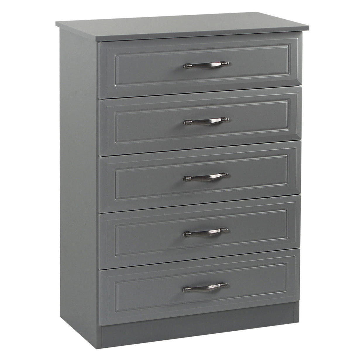 Introducing the Metro five drawer chest by Gleneagle. This bedroom chest has subtle detailing which results in a beautiful chest which coasts wood effect drawers, tops and modern drawer internals. The reeded handle gives this range a nice twist. The Metro comes in two colours grey or white. It is delivered fully assembled.