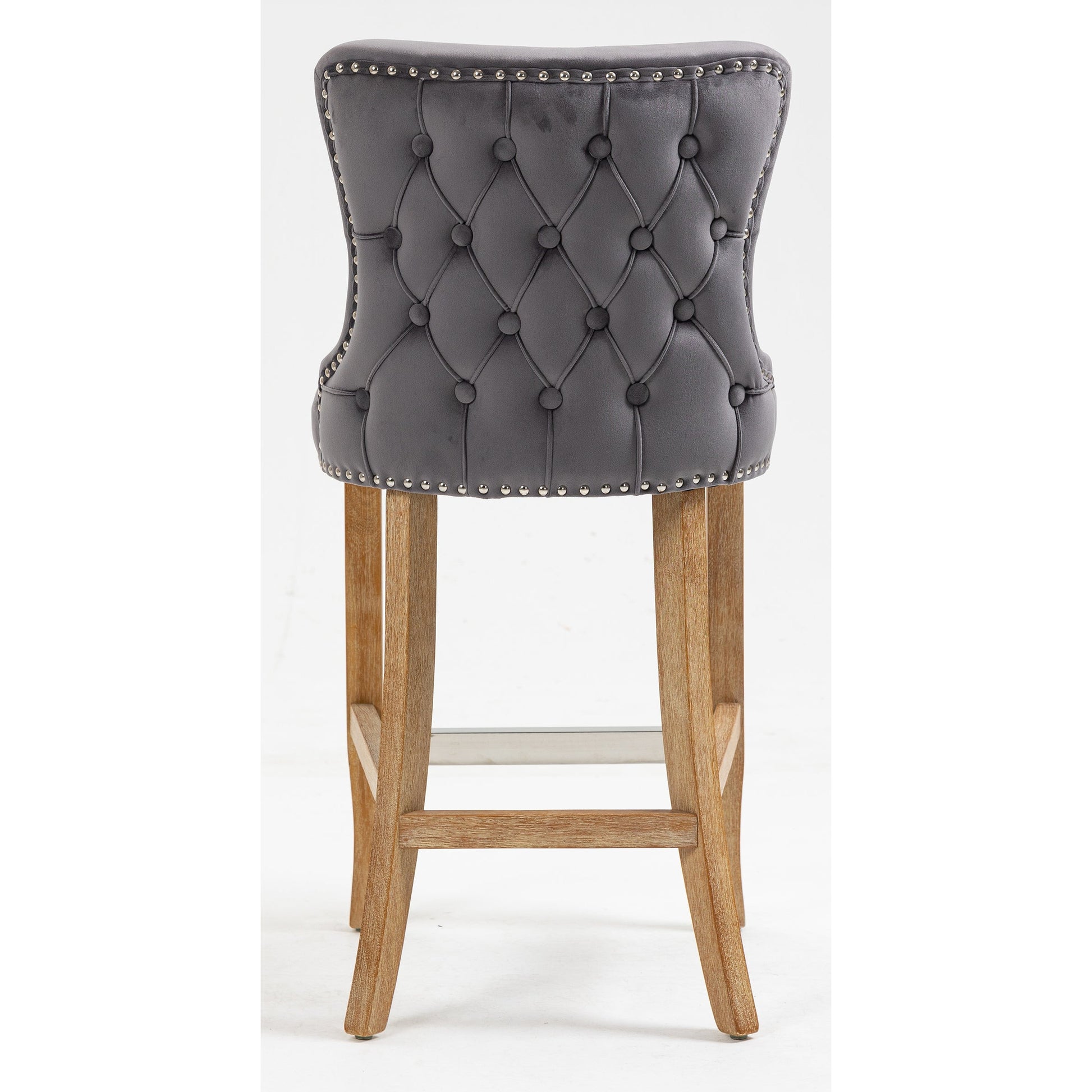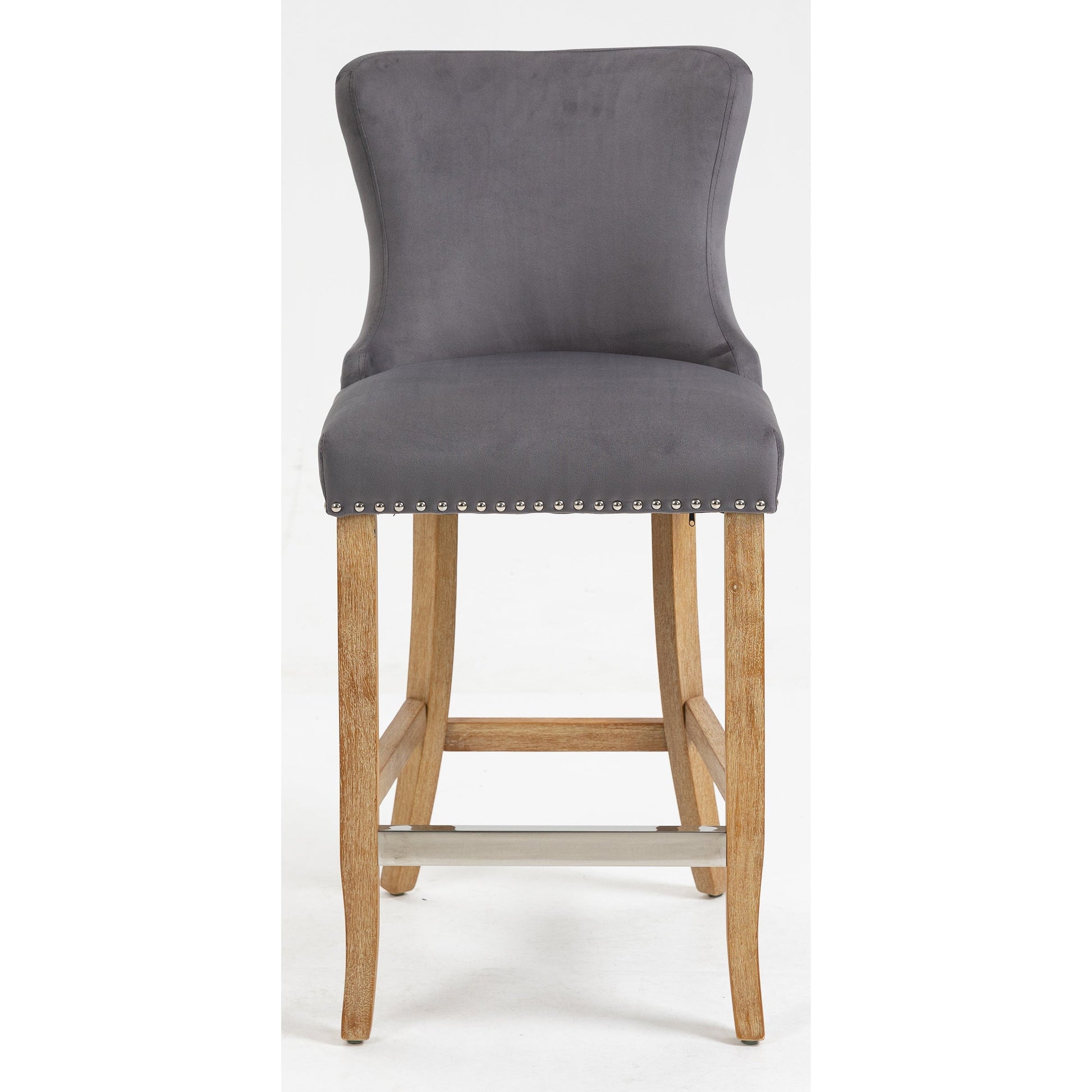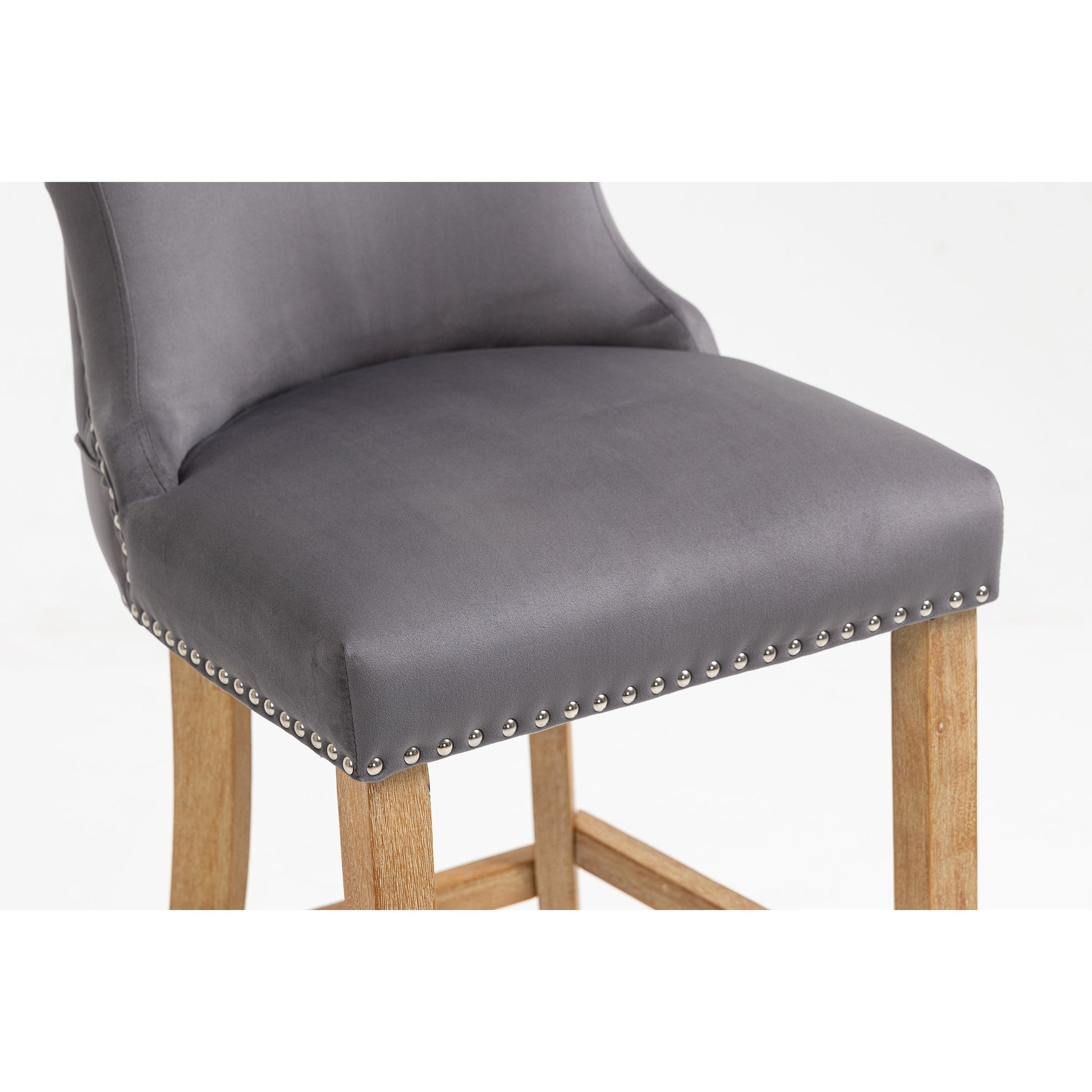 Providing an opulent update to your breakfast counter or bar, the Tokyo bar stool is all about the stunningly textured velvet fabric that comes in a smart storm grey shade. Wonderfully detailed with a decorative buttoned back and metal studs. The seat is supported by a solid oak finished four-legged frame, which is fixed at the perfect height for use alongside kitchen worktops, islands and breakfast bars. Bolstered by polished chrome bracing bars, the frame imparts excellent stability, plus the supports double up as handy footrests for a contemporary finish to any kitchen.